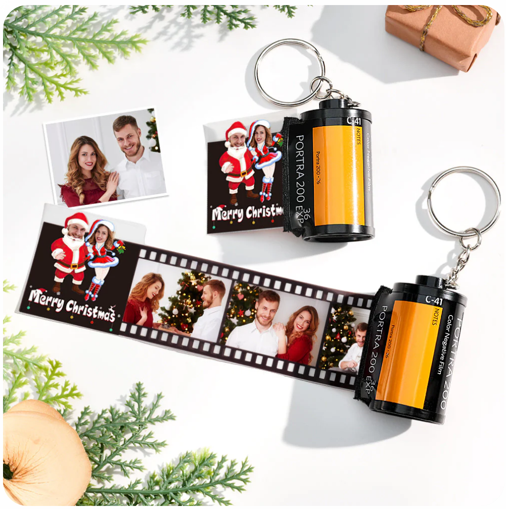 Custom Couples Heart Vintage Film Roll Memory Keychain with Text or Spotify Song Code