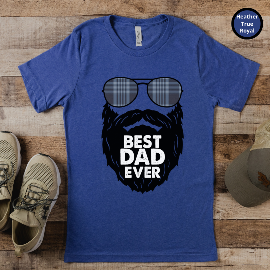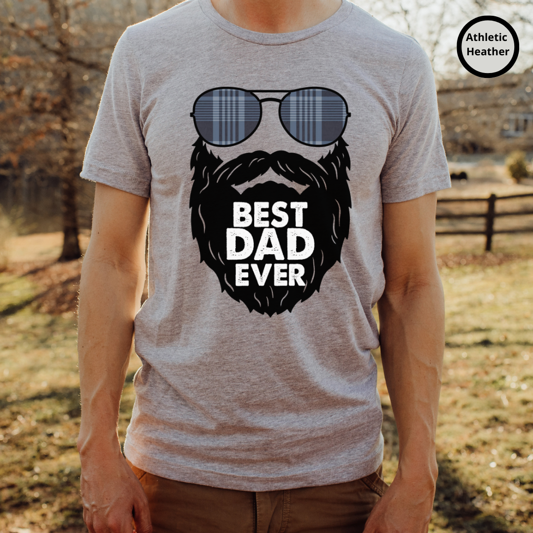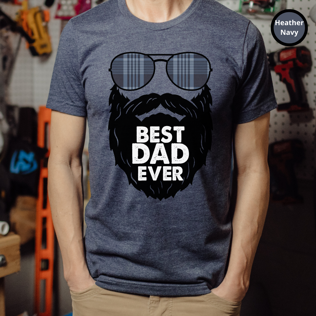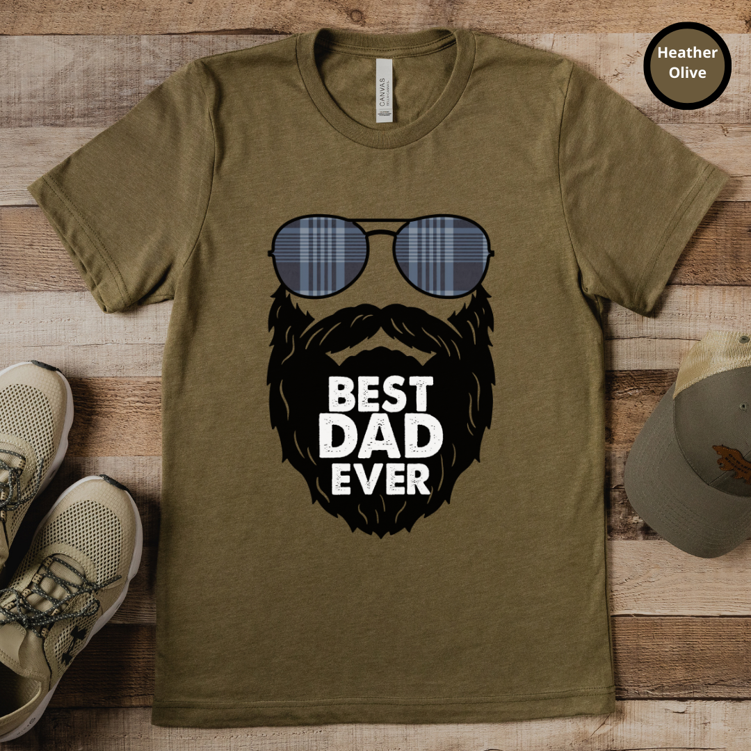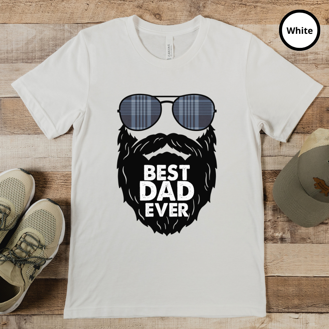 Introducing our new Best Dad Ever t-shirt! This shirt features a black and white illustration of sunglasses and a beard - the perfect look to describe the perfect dad! Not only is it stylish, but it also conveys the message of how much you care about the amazing father in your life. Best Dad Ever? Make sure he knows it with this one-of-a-kind, high quality t-shirt. It's made with durable cotton and is machine washable, so it will last. Whether you're celebrating Father's Day, a birthday, or just because, show your dad how much you love and appreciate him with this timeless piece of apparel.