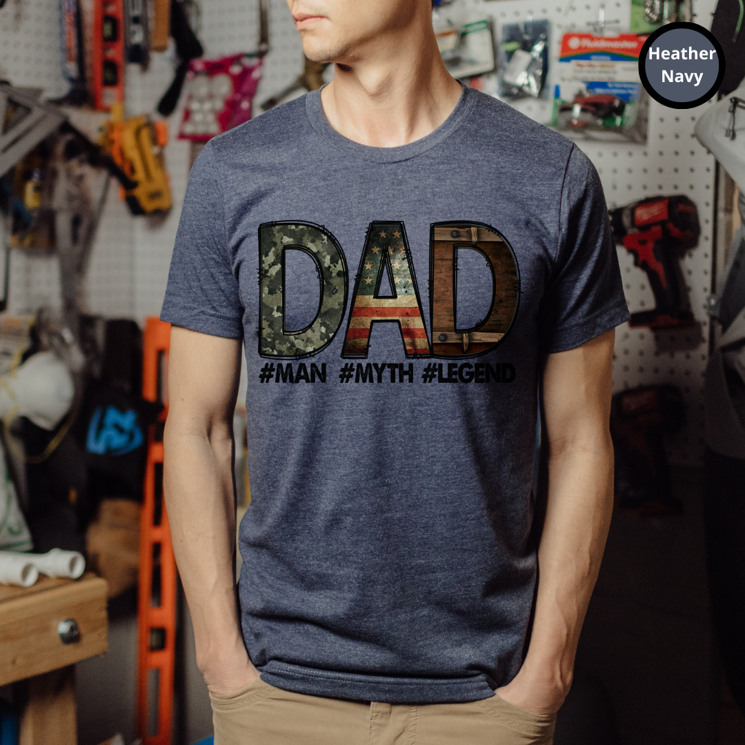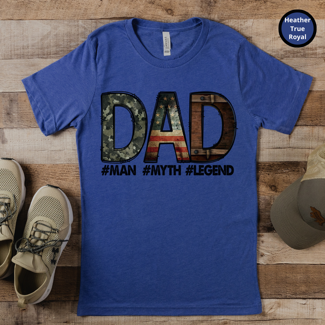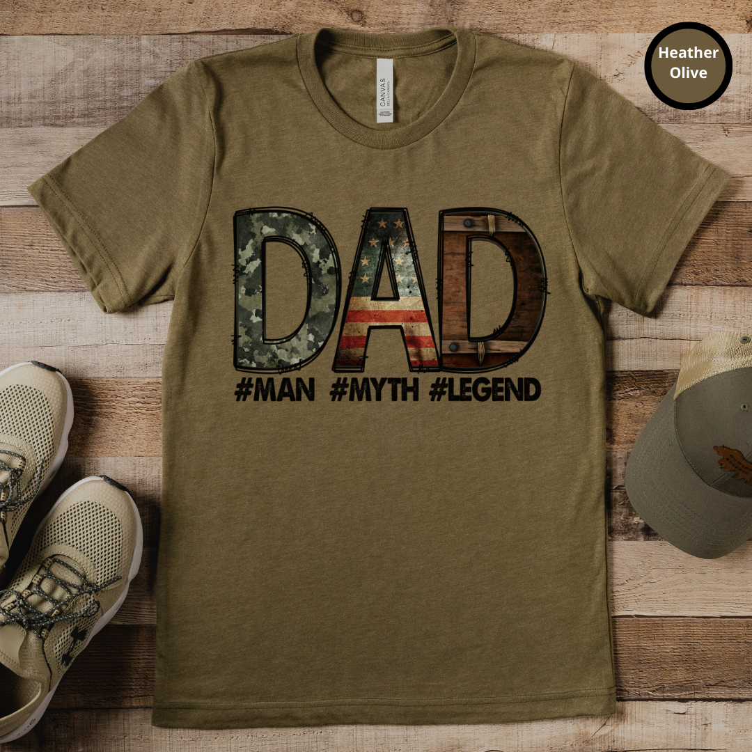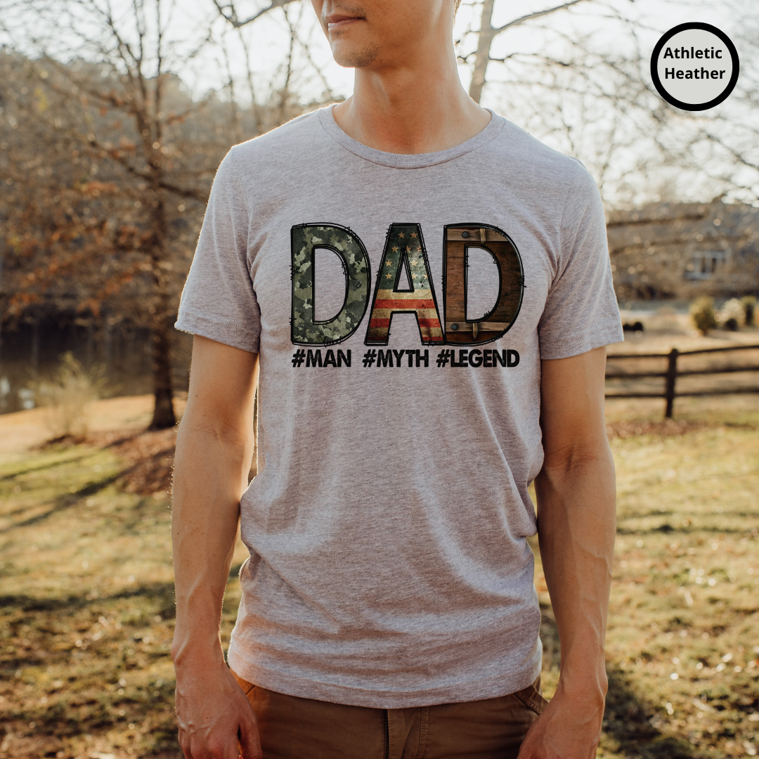 This Dad #Man #Myth #Legend t-shirt is perfect for the modern day patriot. With a classic twist on a timeless classic, you'll be sure to be showing your support. The subtle design of the flag against the stylish military-inspired camo print is perfect for any adventure - whether that's a trip to the bowling alley or a trip overseas. Crafted from comfortable, breathable fabric, this tshirt is sure to be a favorite for years to come. Show your devotion and patriotism with the Dad Man Myth Legend tshirt.