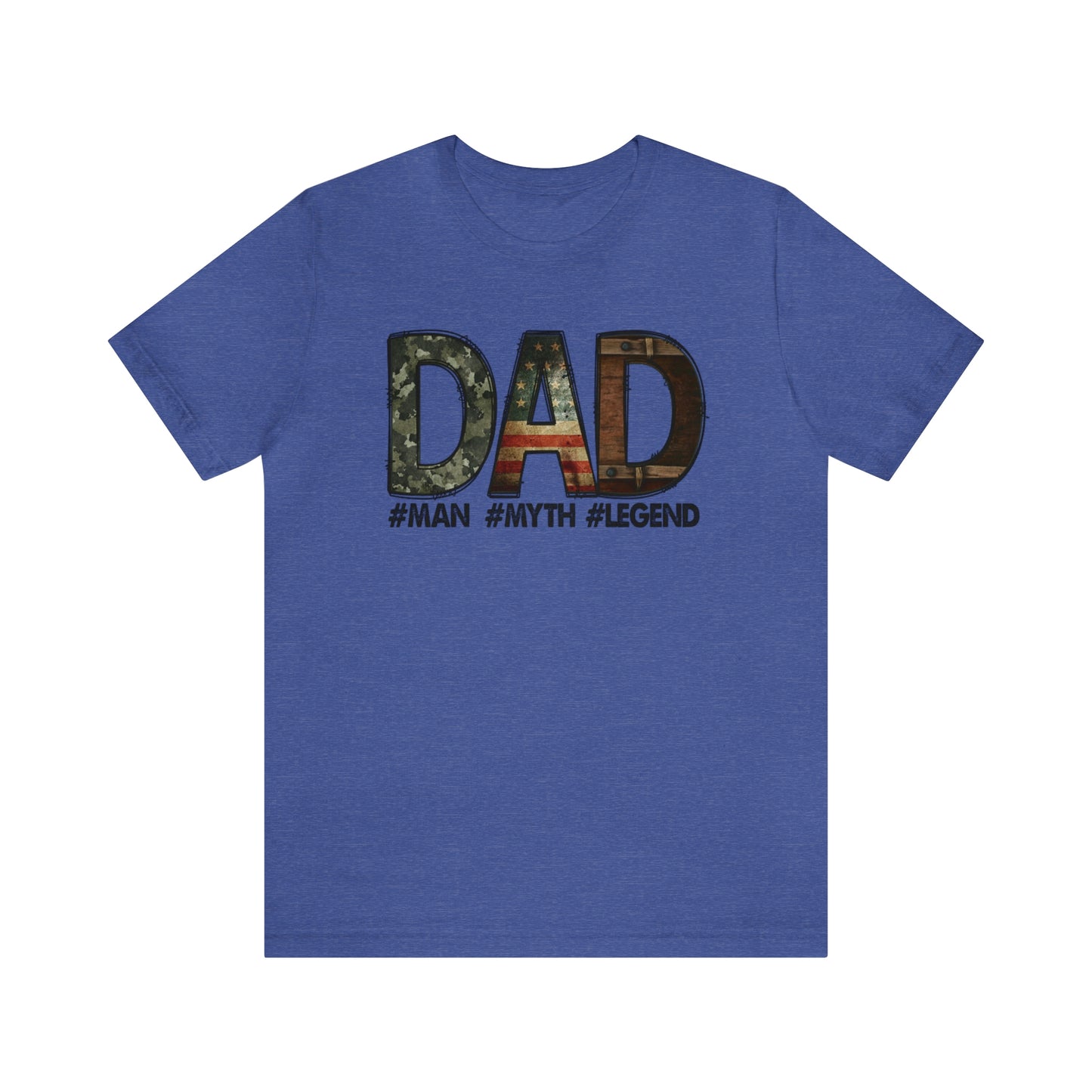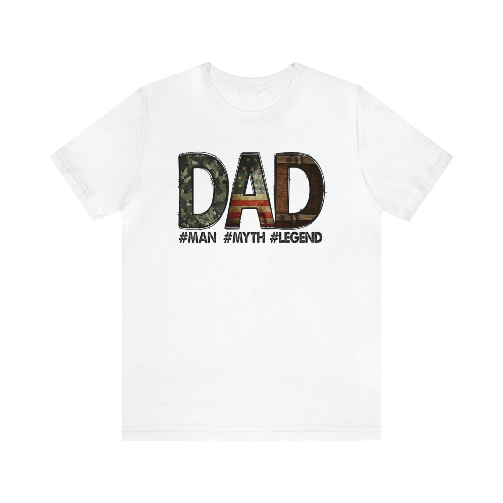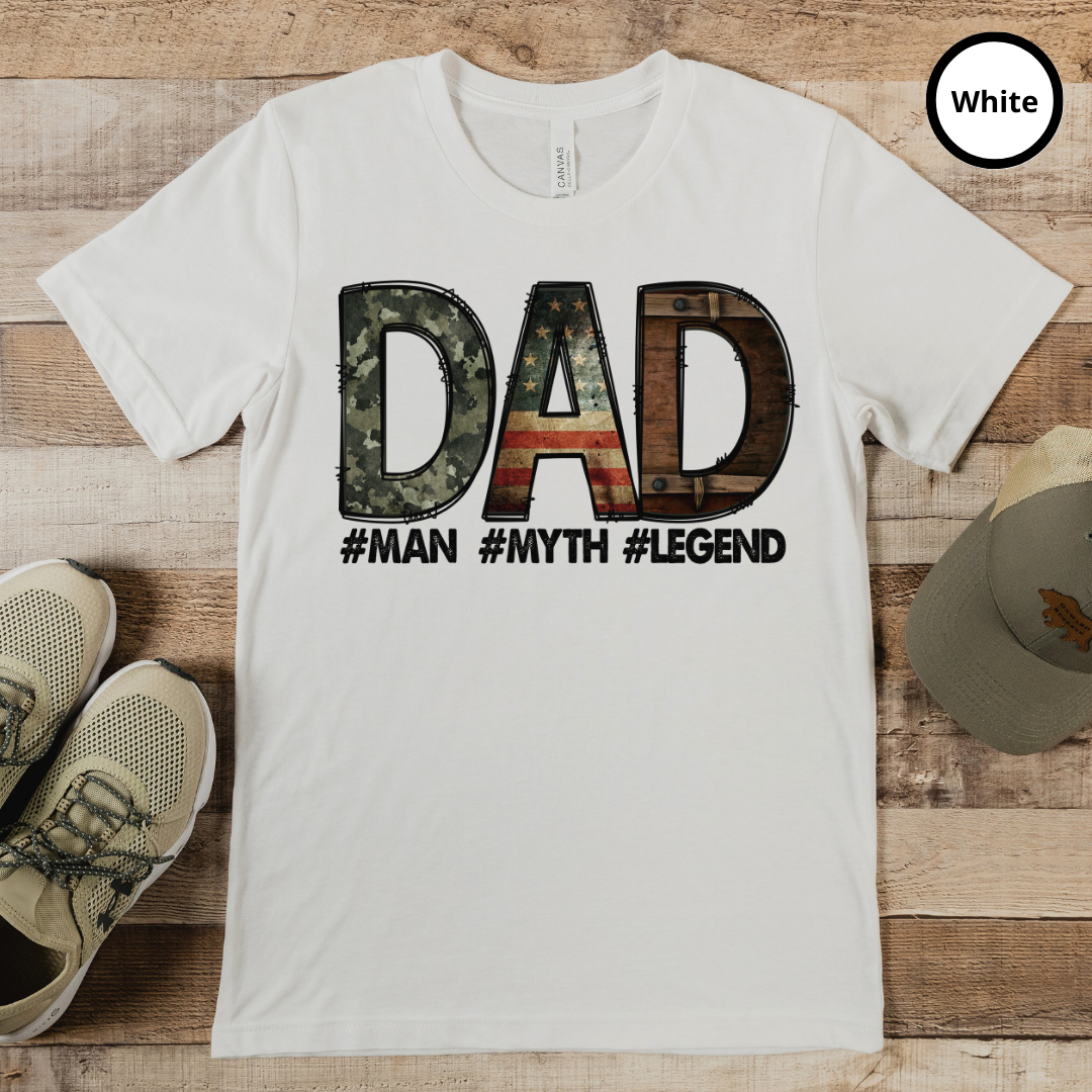This Dad #Man #Myth #Legend t-shirt is perfect for the modern day patriot. With a classic twist on a timeless classic, you'll be sure to be showing your support. The subtle design of the flag against the stylish military-inspired camo print is perfect for any adventure - whether that's a trip to the bowling alley or a trip overseas. Crafted from comfortable, breathable fabric, this tshirt is sure to be a favorite for years to come. Show your devotion and patriotism with the Dad Man Myth Legend tshirt.