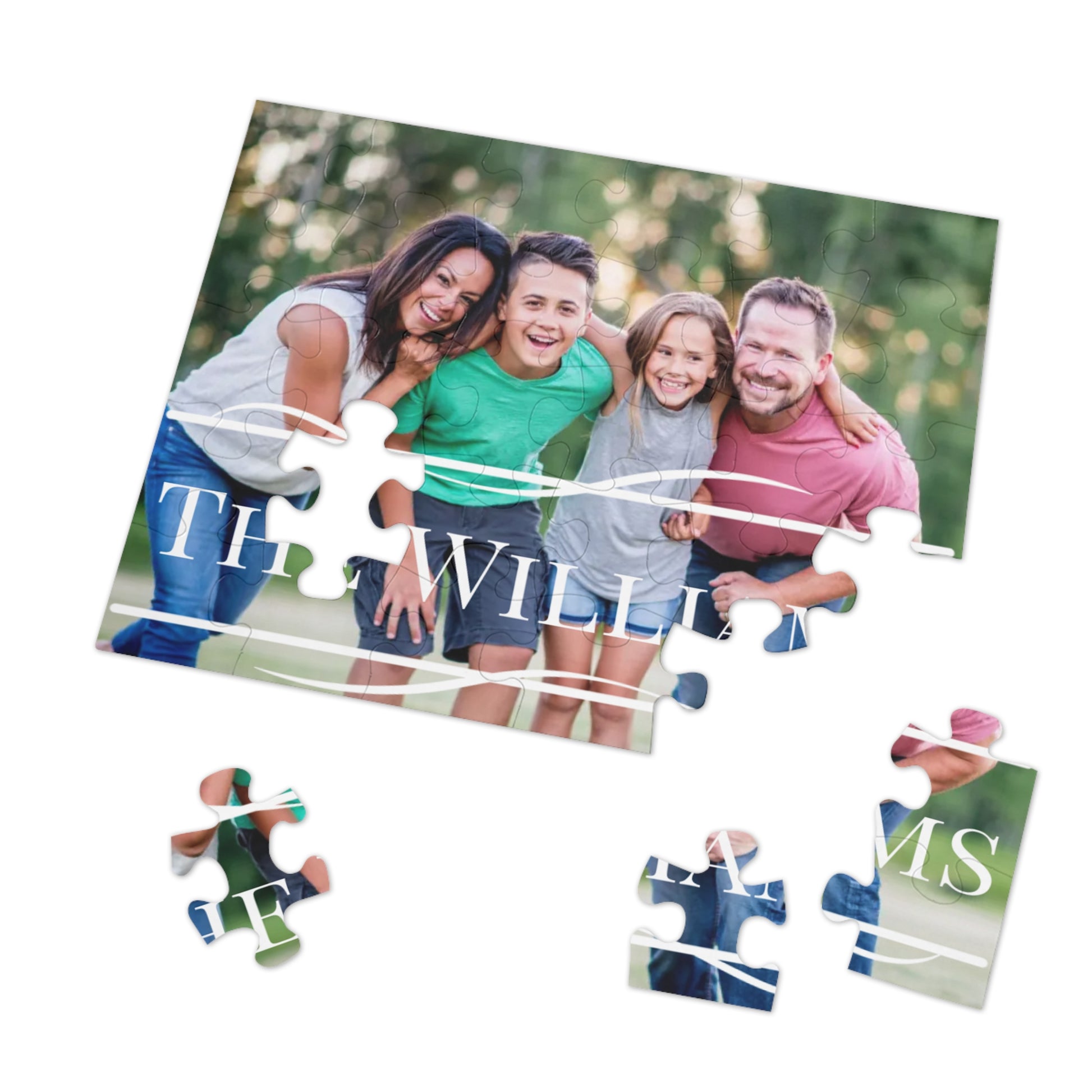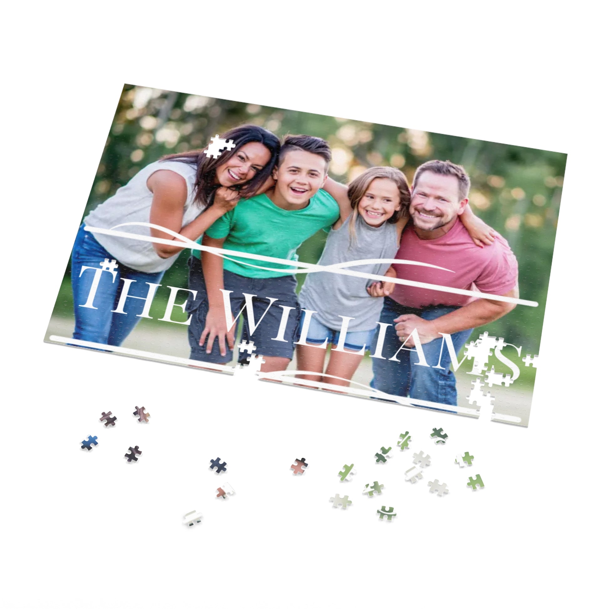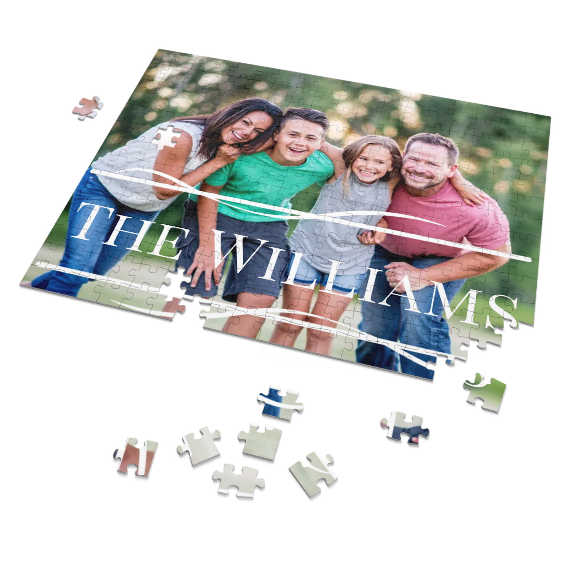 Cherish your family photos in a fun new way with our Custom Family Photo and Name Jigsaw Puzzle with Tin. A personalized jigsaw puzzle will deliver wholesome downtime for friends and family. Made with high-quality chipboard pieces, our puzzles come in 30, 110, 252, 500, 1000, and 2,000 piece variations. Makes the perfect, personalized gift for holidays, birthdays, anniversaries, Mother's or Father's Day.