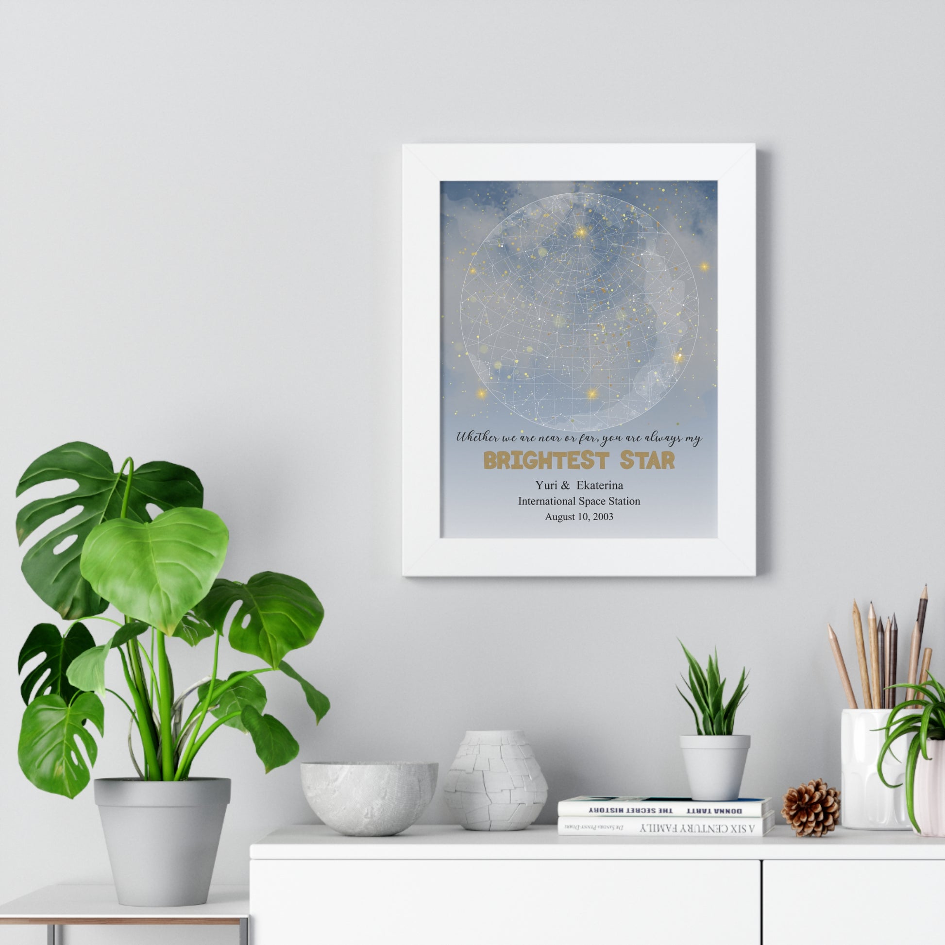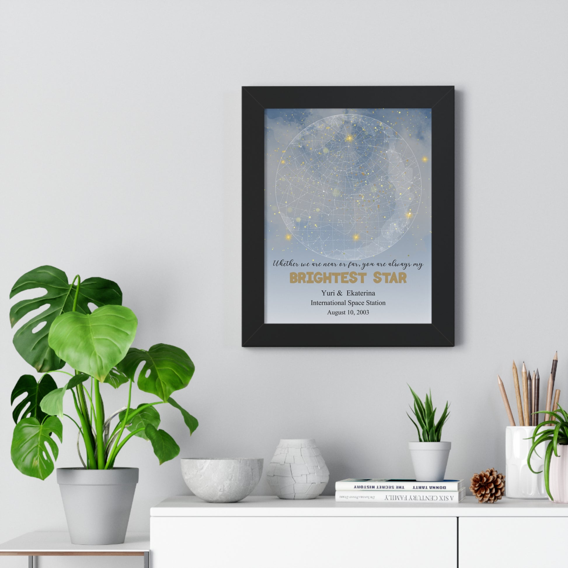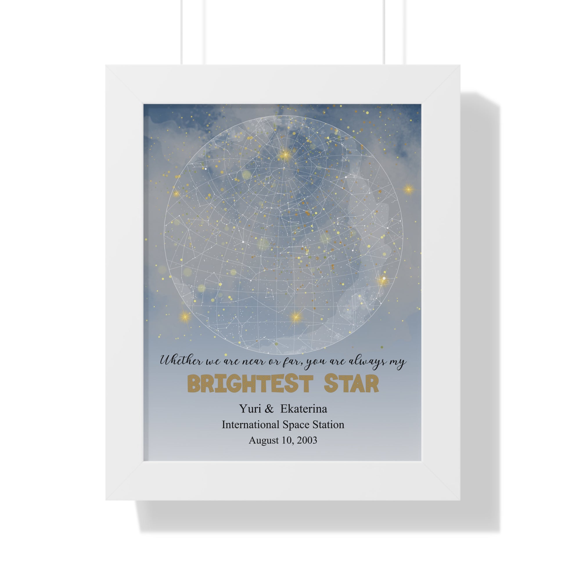 Mark a special moment in time with our Brightest Star Personalized Star Map, a perfect blend of art and sentiment. Whether it's to celebrate a wedding anniversary, a birthday, or a special milestone, this piece resonates with anyone cherishing precious memories. Perfect for couples, families, or friends, this poster is a unique way to commemorate unforgettable moments and add a starry vibe to your home. It's an ideal addition to your collection for holidays like Valentine’s Day, or just simply to bring joy into your daily life!