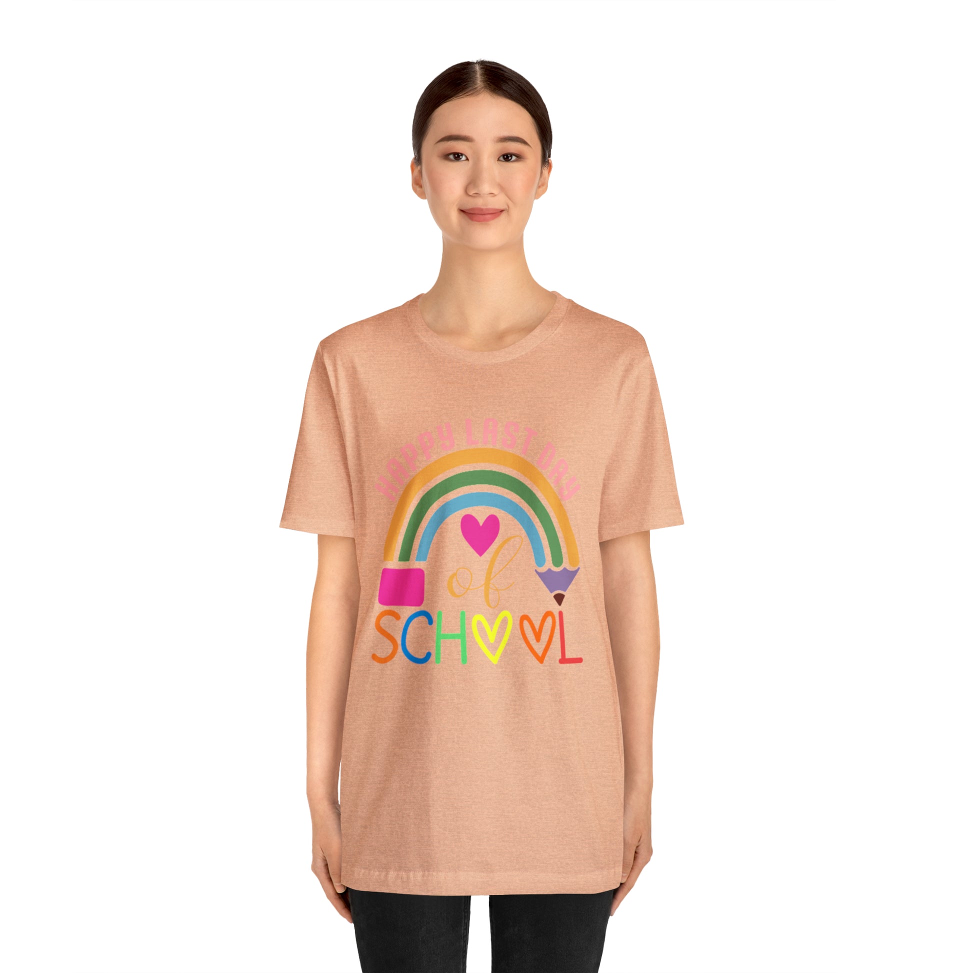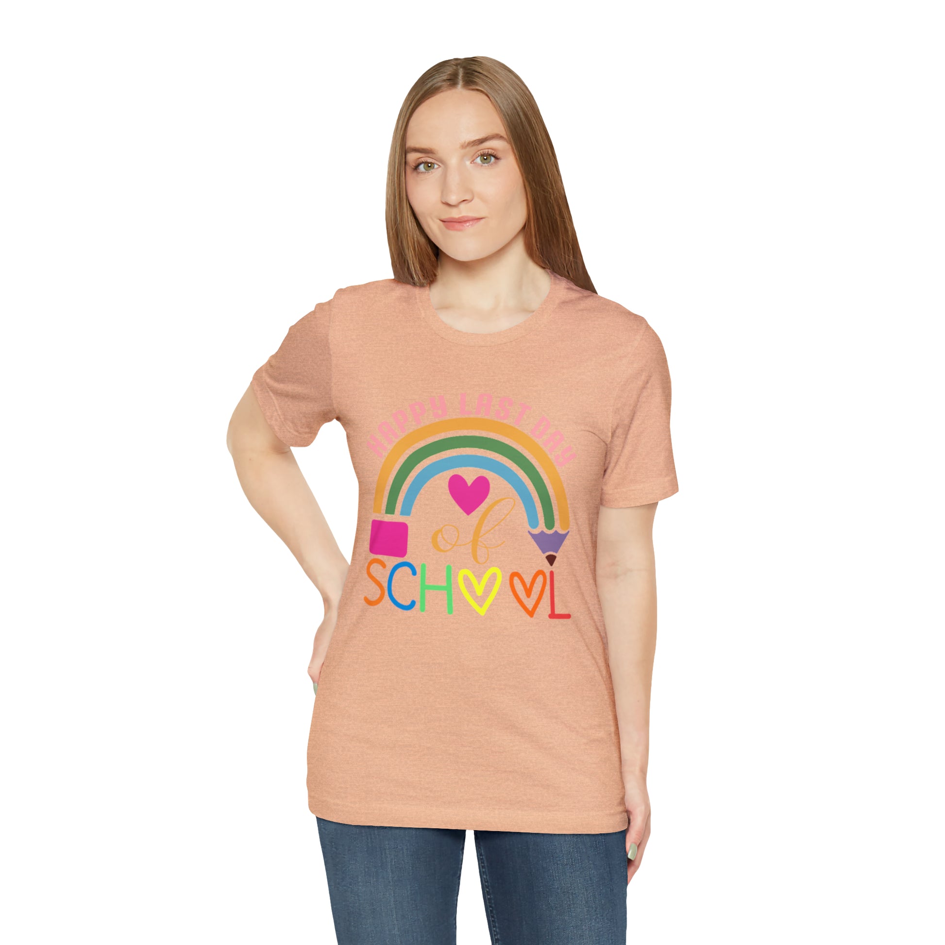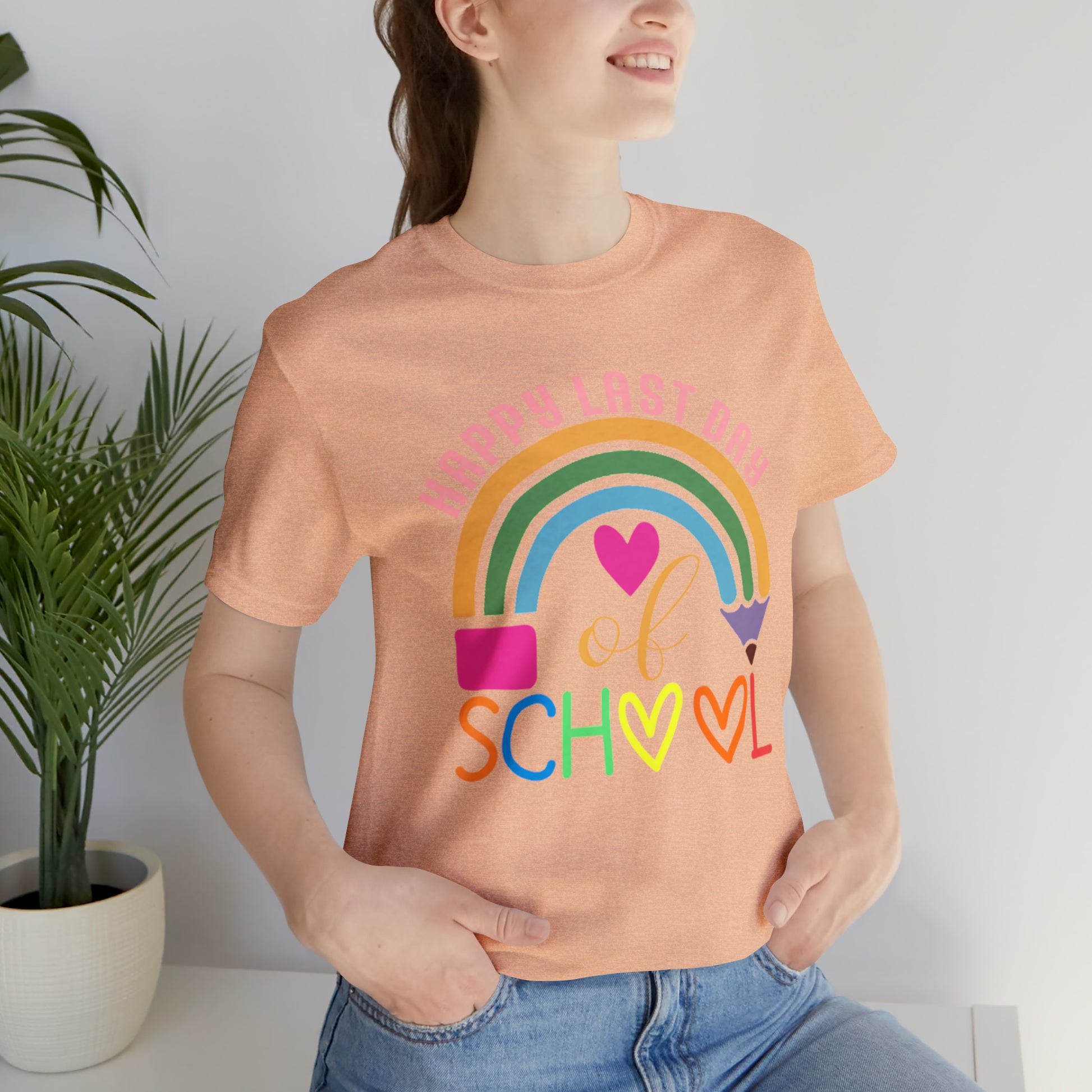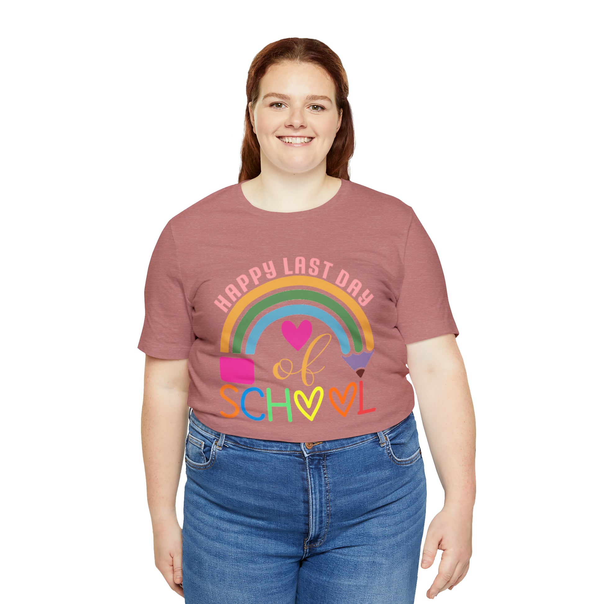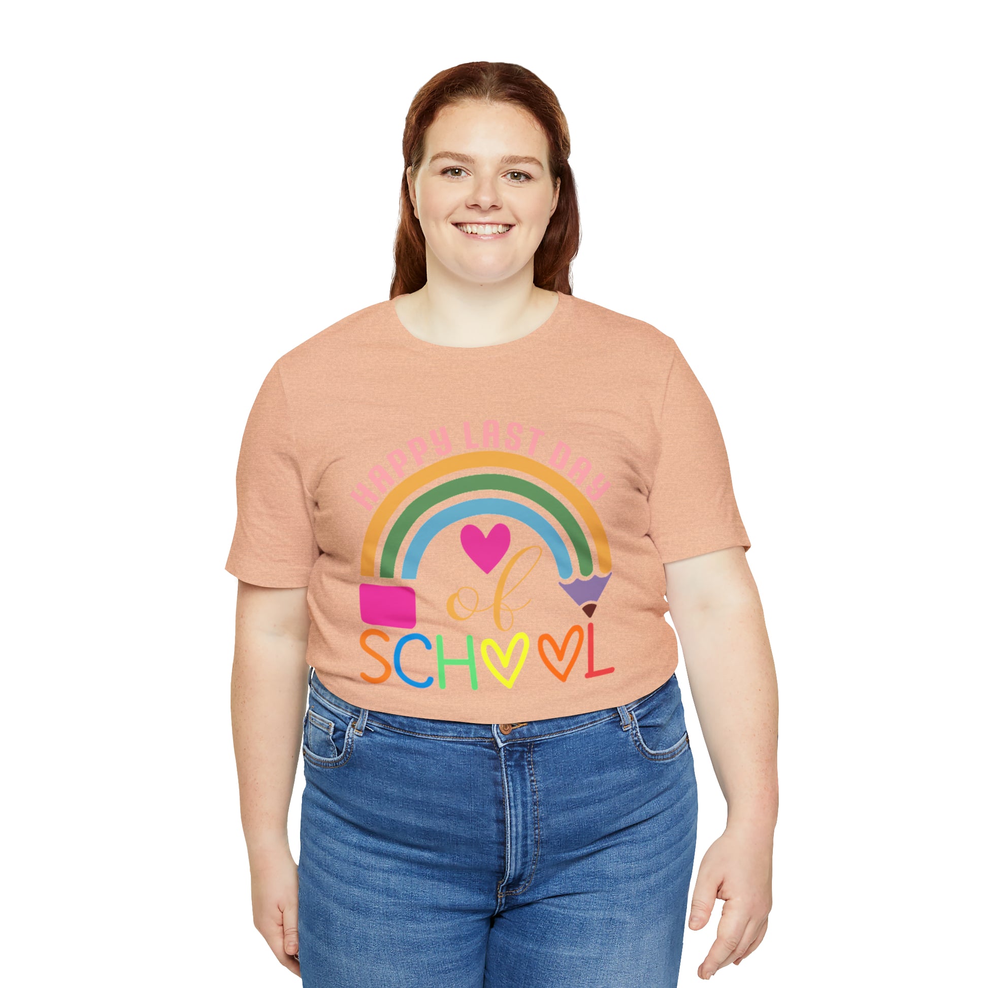 This stylish shirt is perfect for the last day of school! It features "Happy Last Day Of School" and a group of students smiling and holding diplomas. It's made of 100% cotton for a comfortable fit, and it comes in several sizes to fit everyone. Show off your pride for graduation and your perfect attendance with this fun shirt!