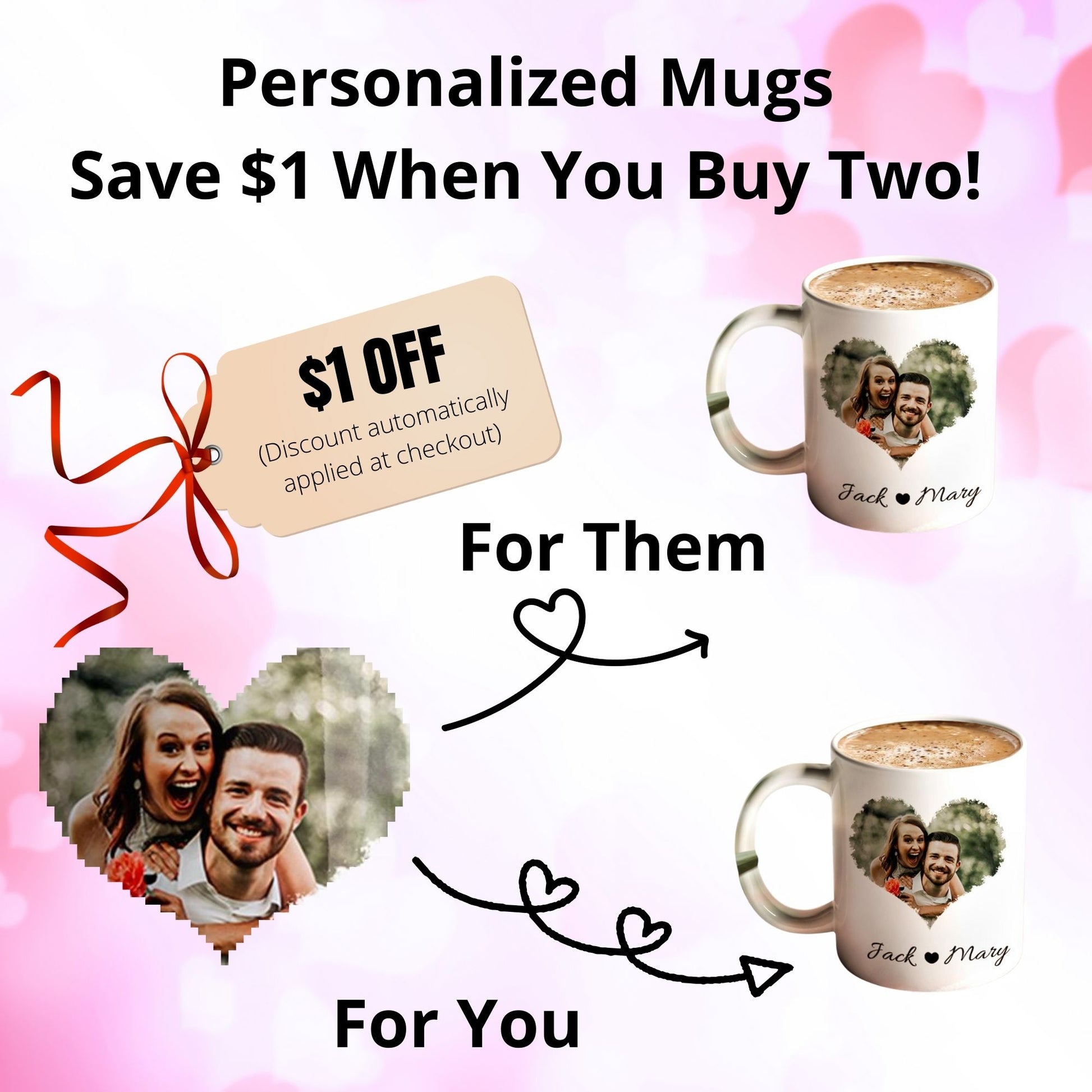 Show your love with this custom Heart & Names Photo Mug for couples, parents and loved ones. Use our website to personalized with your own photo and names, and preview your product before purchase. This mug makes for a great anniversary, wedding, Valentine's Day, Christmas or Holiday gift.