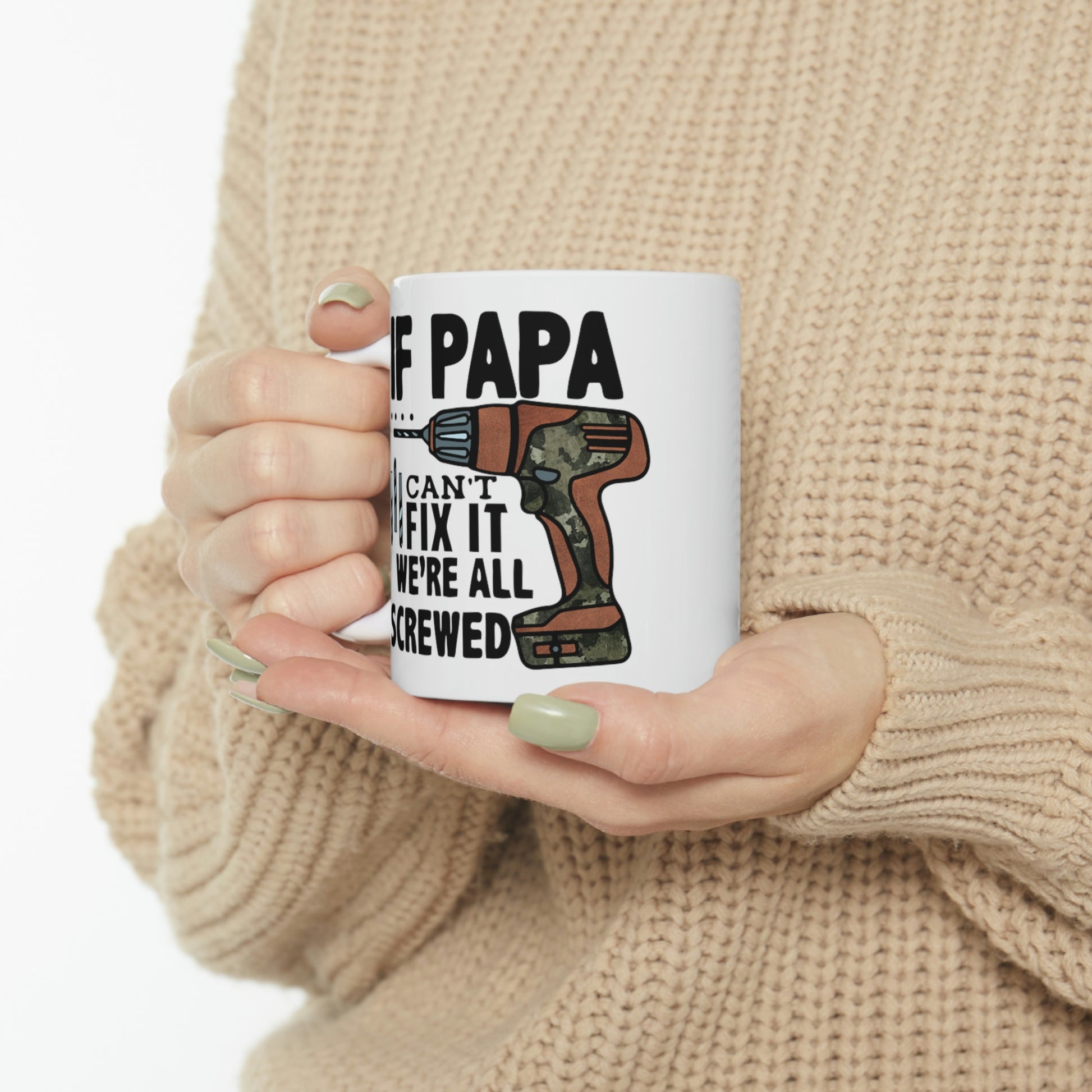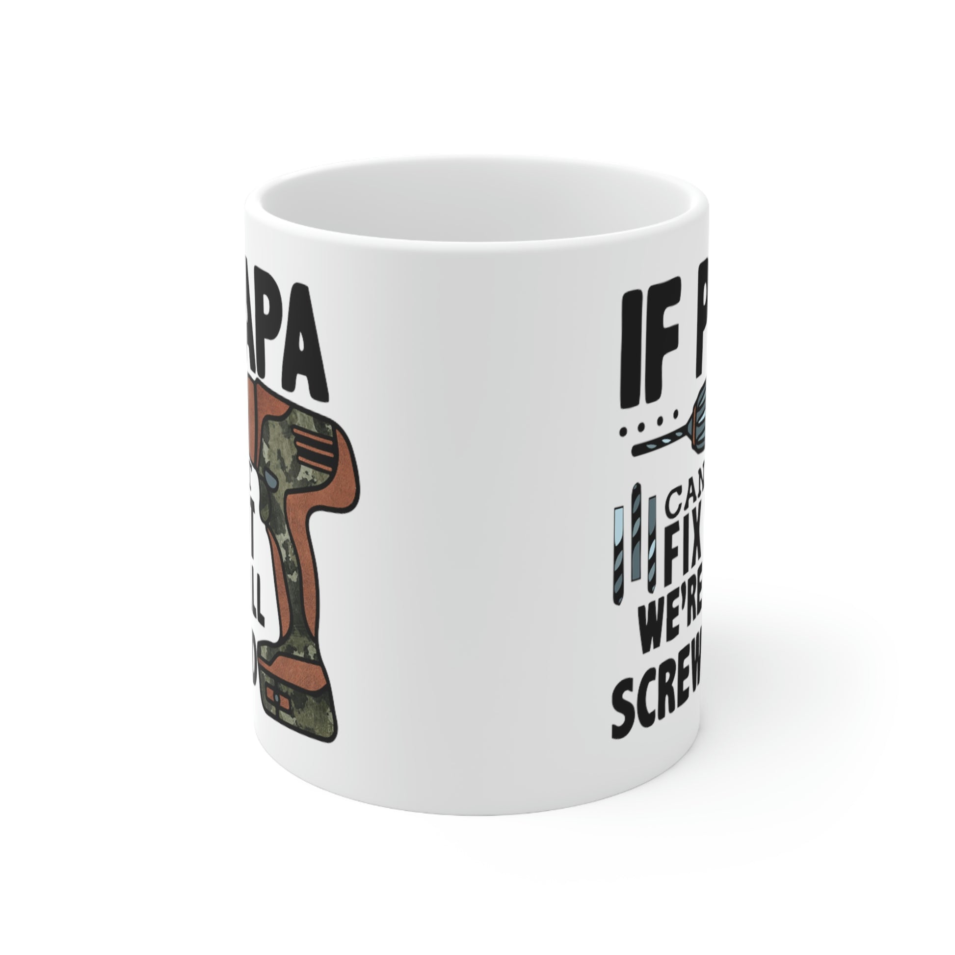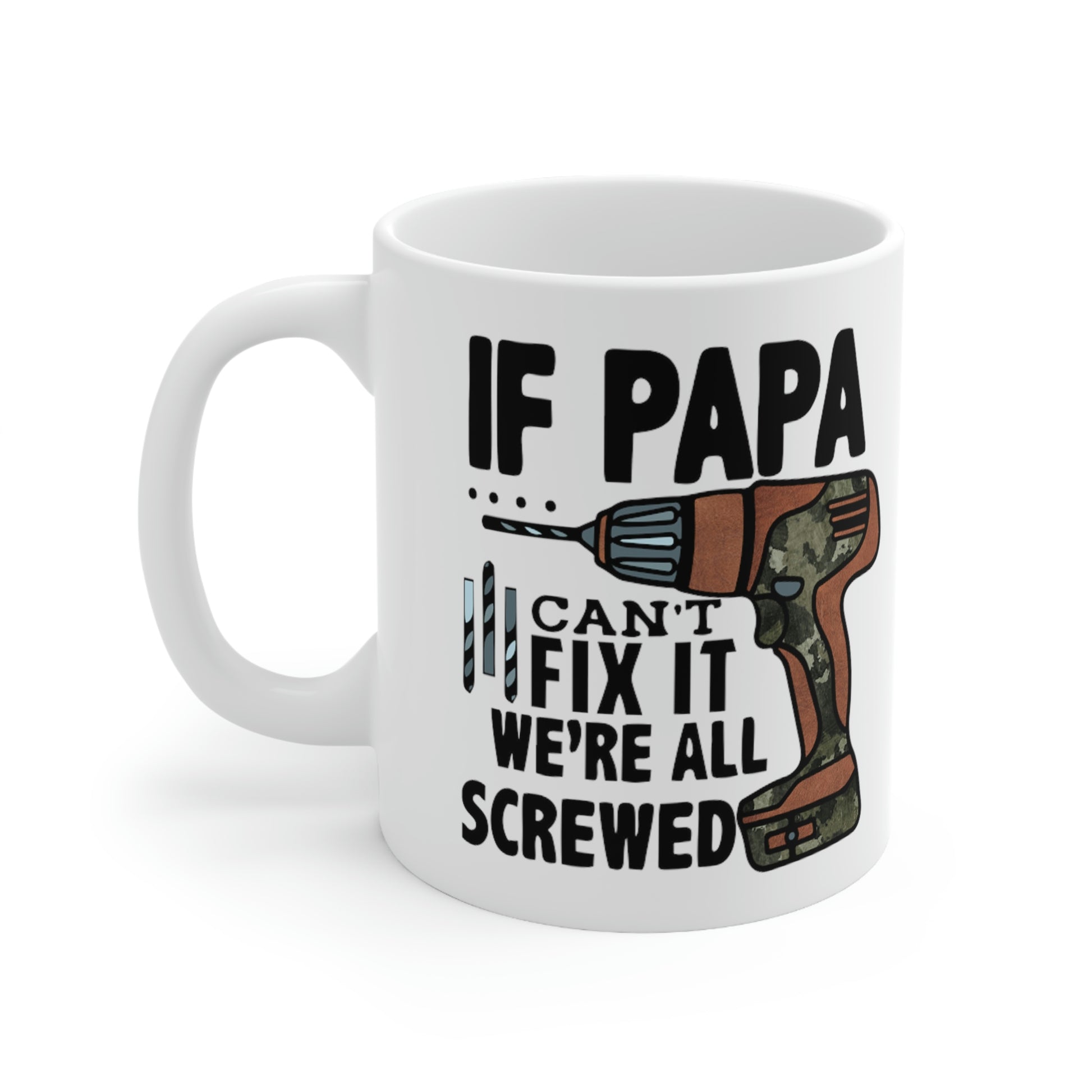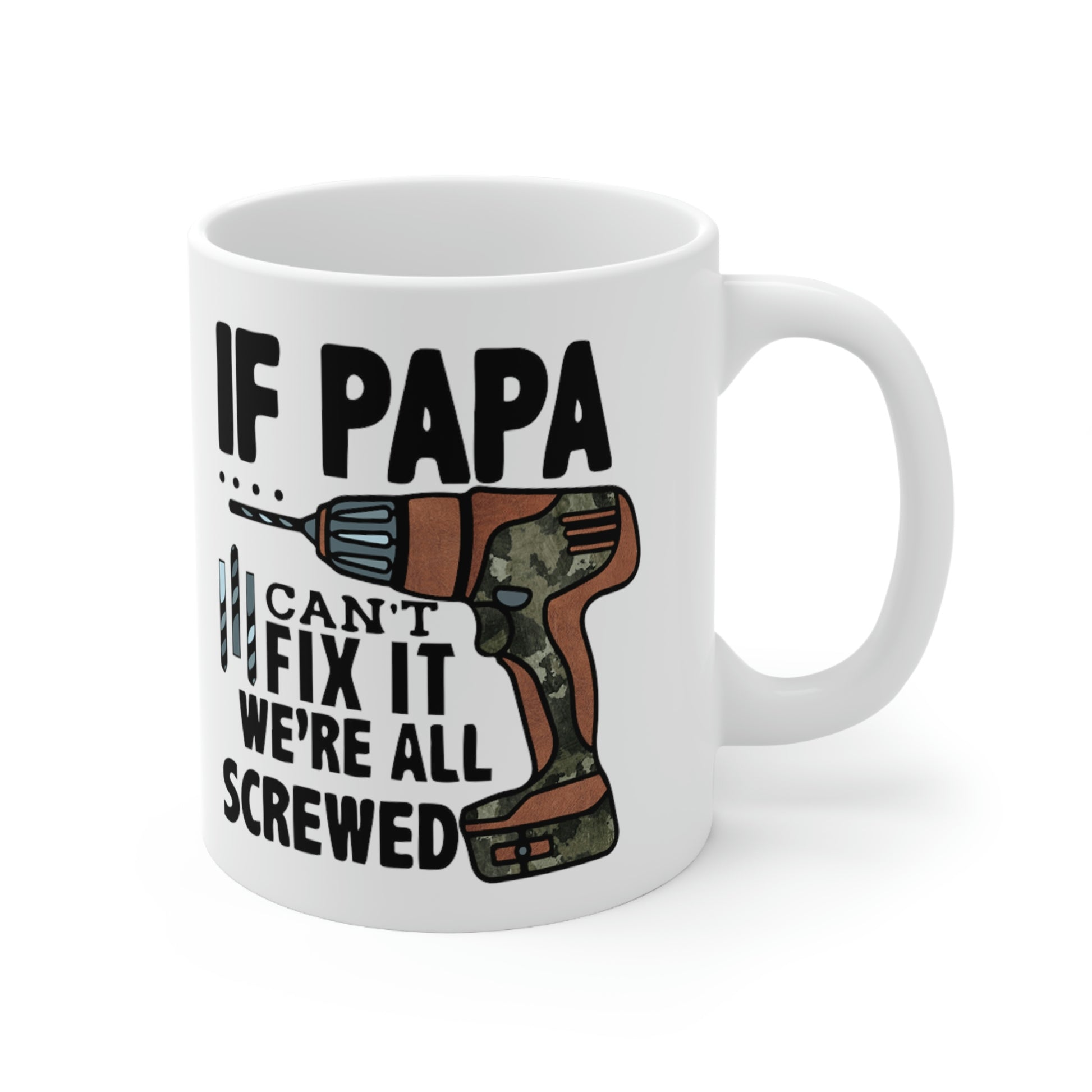 This If Papa Can't Fix It We're All Screwed T-shirt features a simple design that conveys a strong message that the whole family lost without their Pops. Dad will be reminded of how important he is every morning with this new coffee cup. This sturdy ceramic mug make for a great gift for Dad on Father's Day, his birthday or any special occausion.