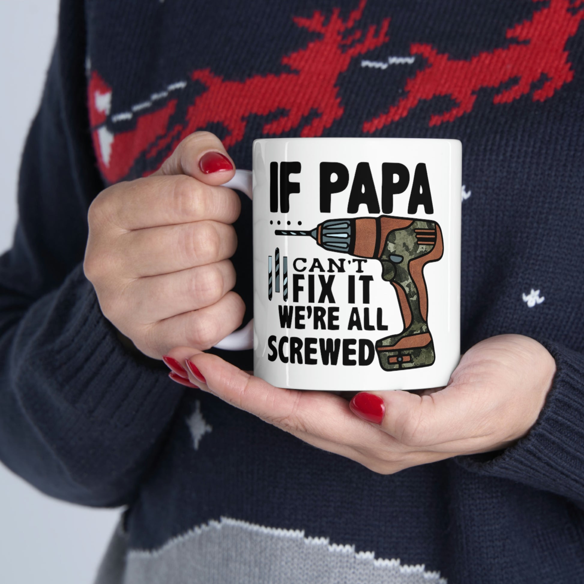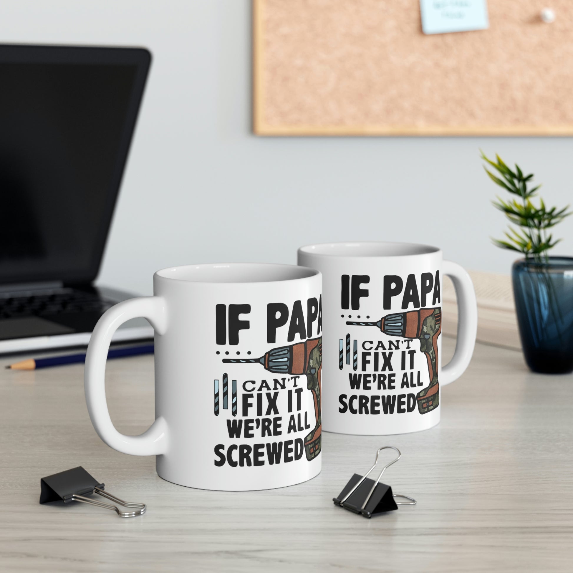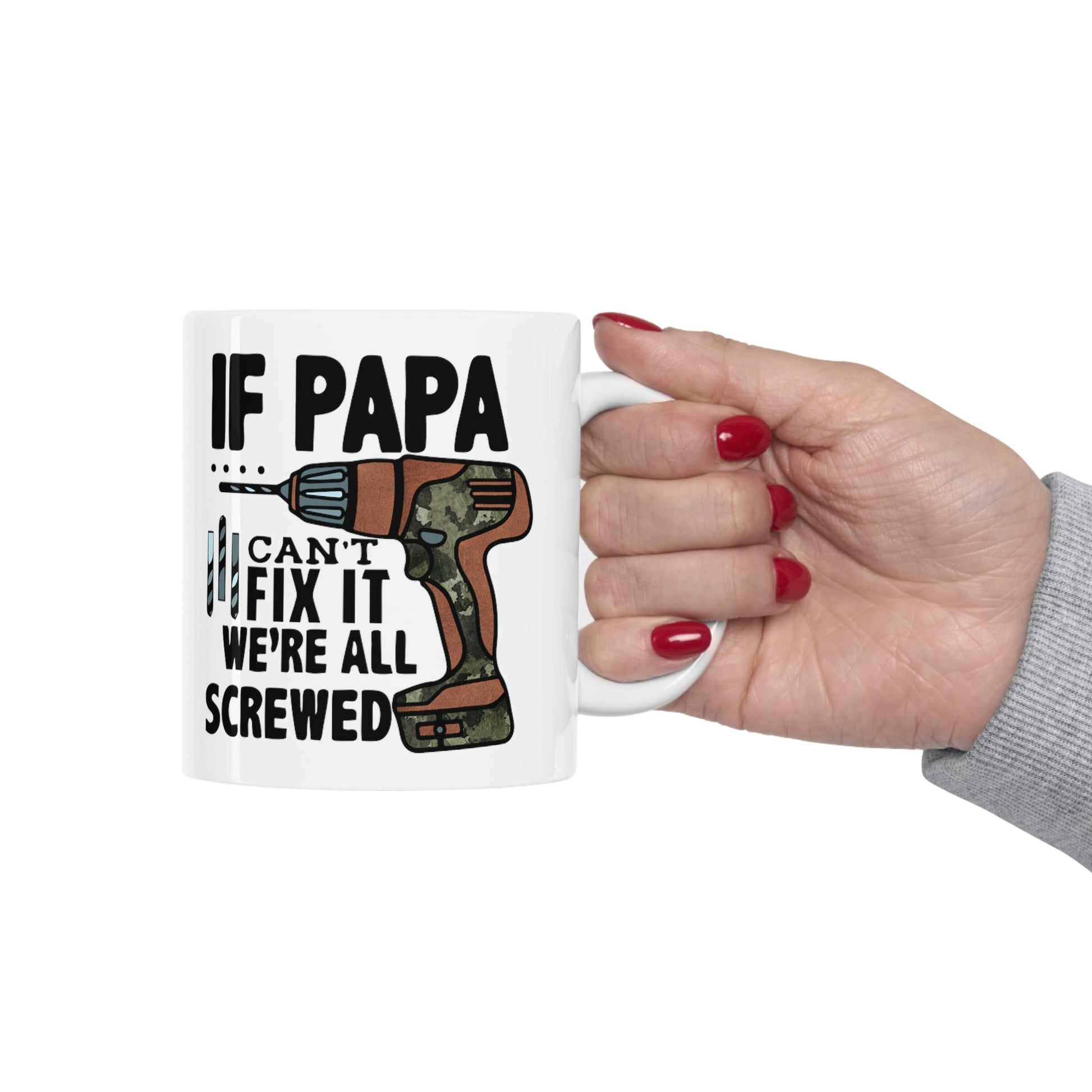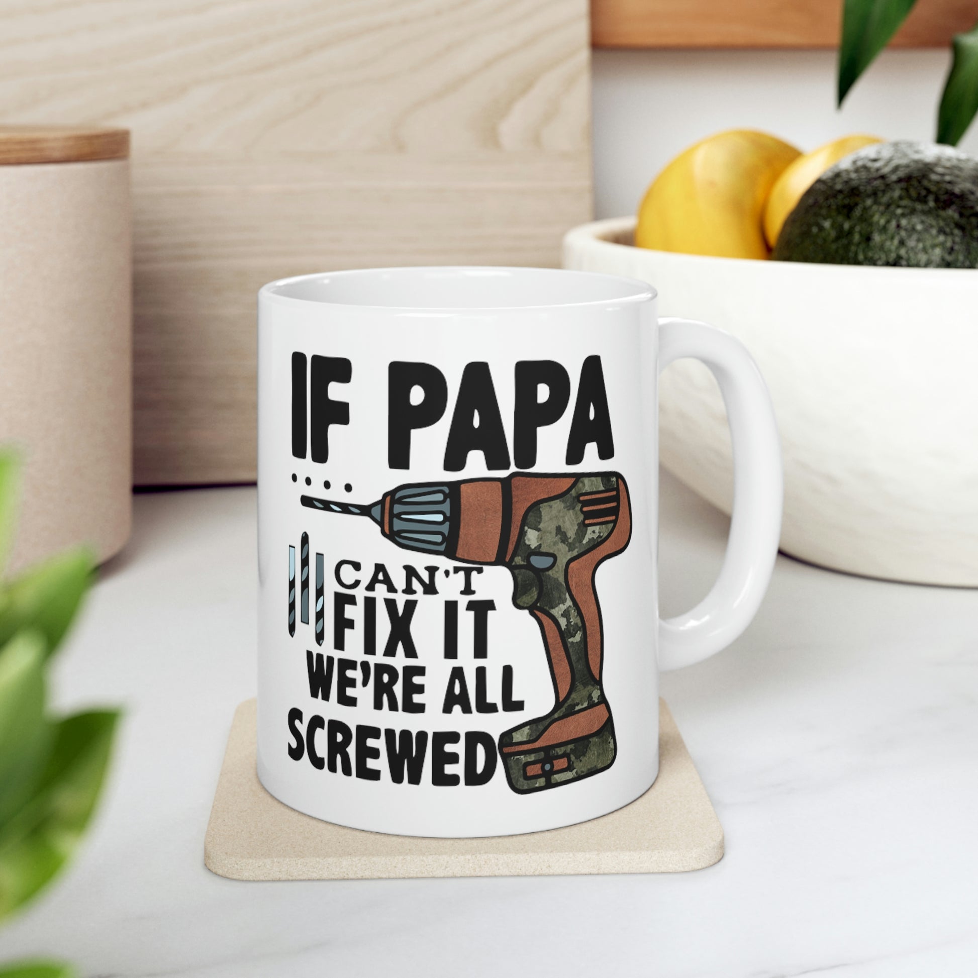 This If Papa Can't Fix It We're All Screwed T-shirt features a simple design that conveys a strong message that the whole family lost without their Pops. Dad will be reminded of how important he is every morning with this new coffee cup. This sturdy ceramic mug make for a great gift for Dad on Father's Day, his birthday or any special occausion.