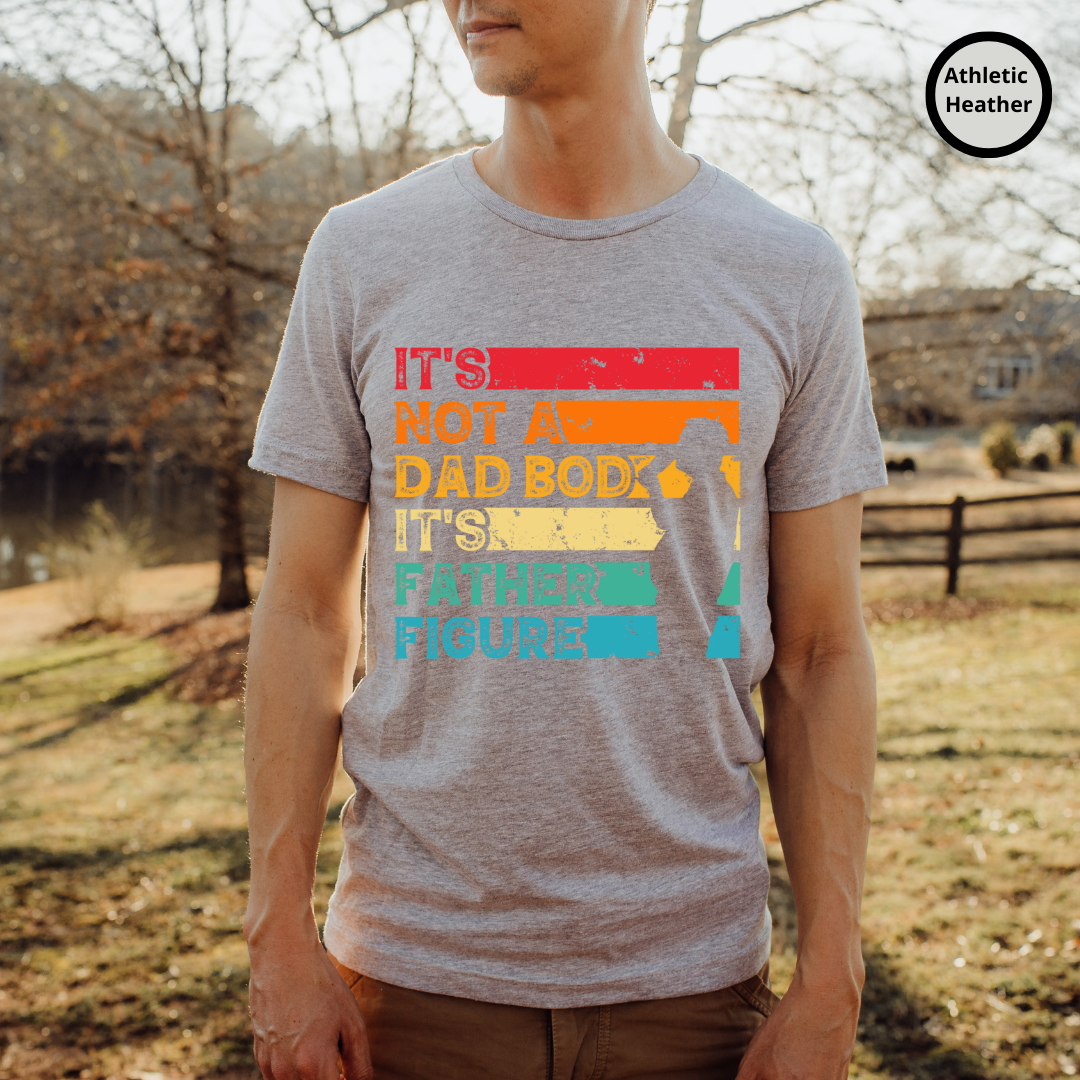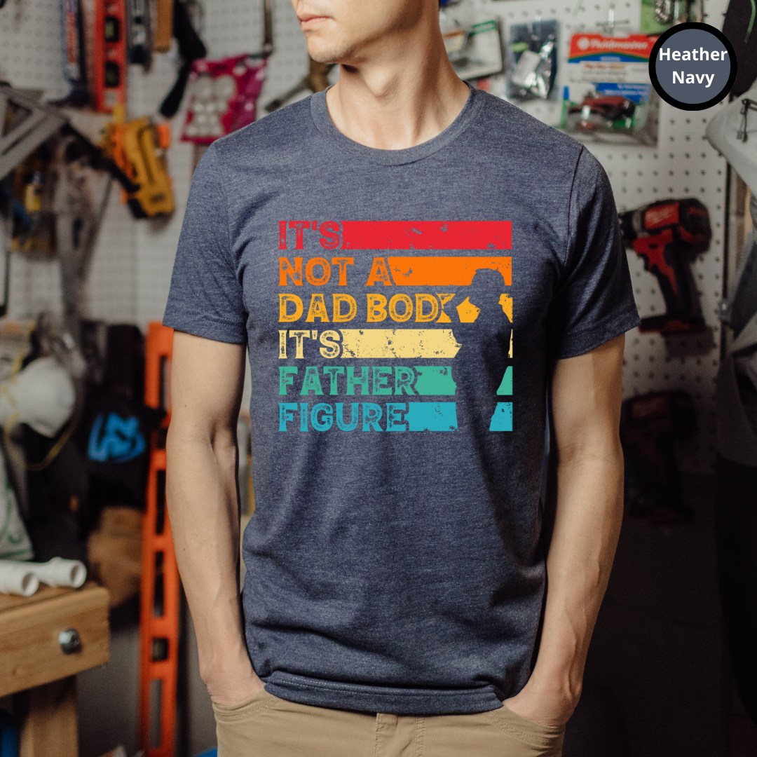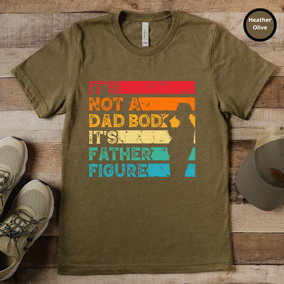 Show off your style and dad pride with this unique t-shirt. Made with 100% organic cotton, this super soft and comfortable tee displays the sarcastic statement, "It's Not A Dad Bod It's A Father Figure". Pair this t-shirt with your favorite jeans and sneakers for a classic look that expresses your appreciation and admiration for all the fathers in your life. This funny Dad joke shirt is a great gift for Dad on Father's Day, his birthday or any day!
