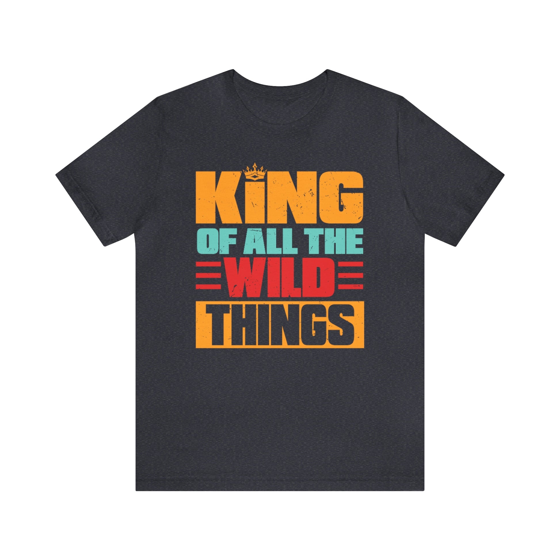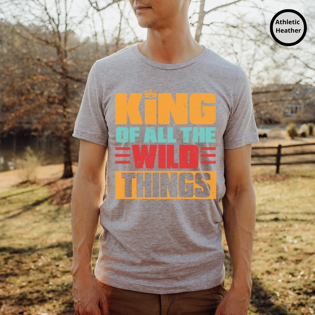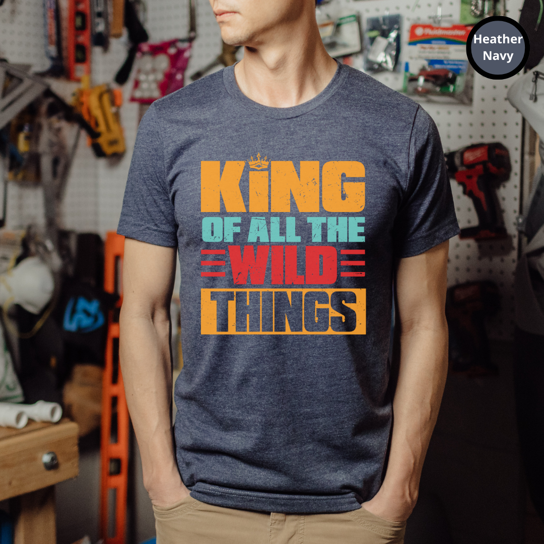 Our King Of All The Wild Things tshirt is perfect for anyone looking to express their wild side. Featuring a majestic lion with a regal golden crown, this tshirt is sure to turn heads and make a bold statement. Printed with high quality inks on a soft and comfortable cotton blend fabric, this tshirt is made to last. With its classic crew neck fit and flattering short sleeves, this garment is perfect for all occasions, dress it down for a casual look or style it up for a night out. Let this tshirt be your go-to for conveying your wild spirit. Makes a great gift for dad on Father's Day or his birthday... or anytime!