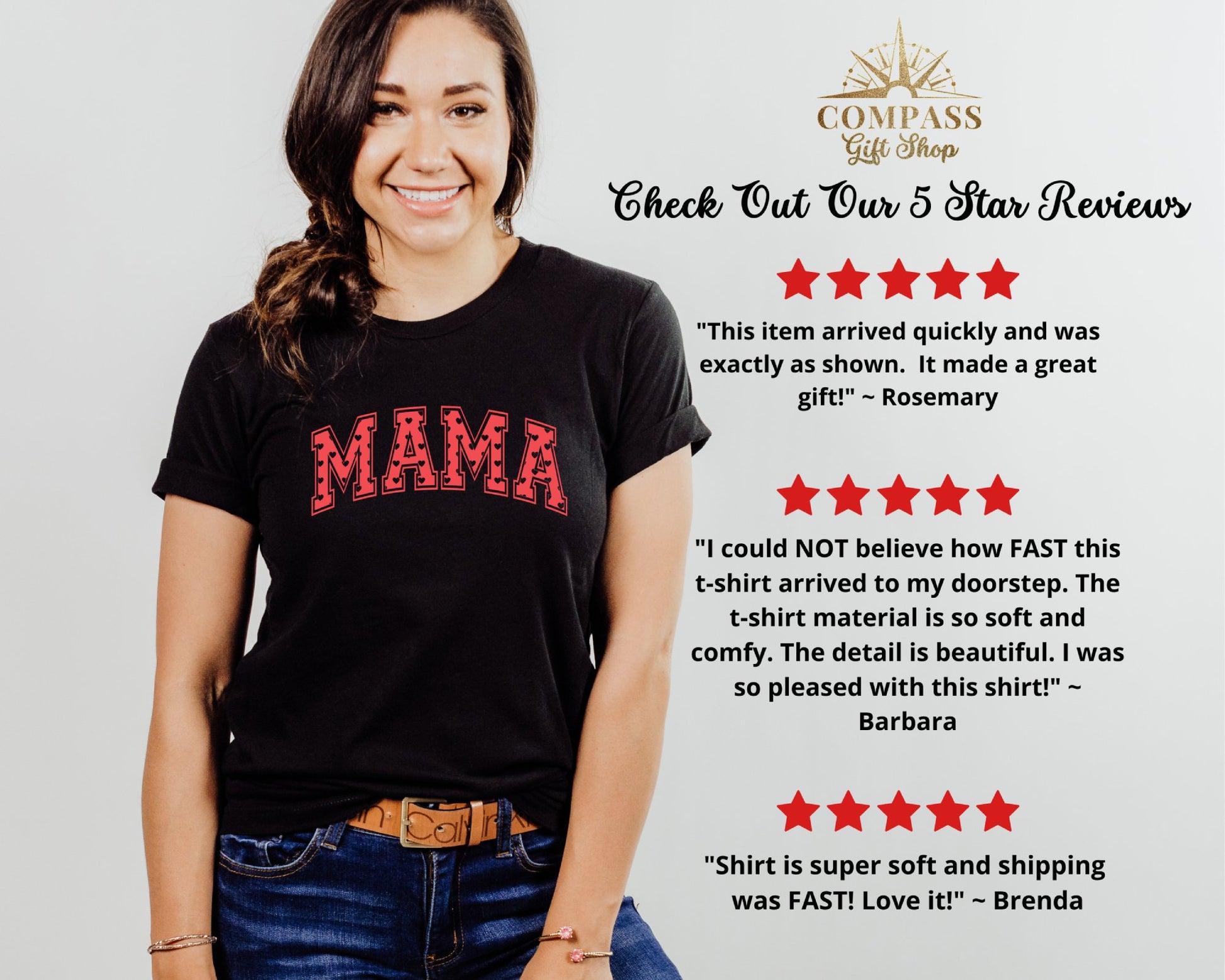 Celebrate Valentine's with our Mama Red Hearts design. Available in a unisex adult shirt, we have the right size for you. We have many colors to choose from as well.