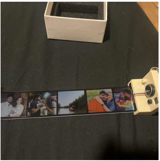 Camera shaped design with 5-10 pics, unique, retro and stylish