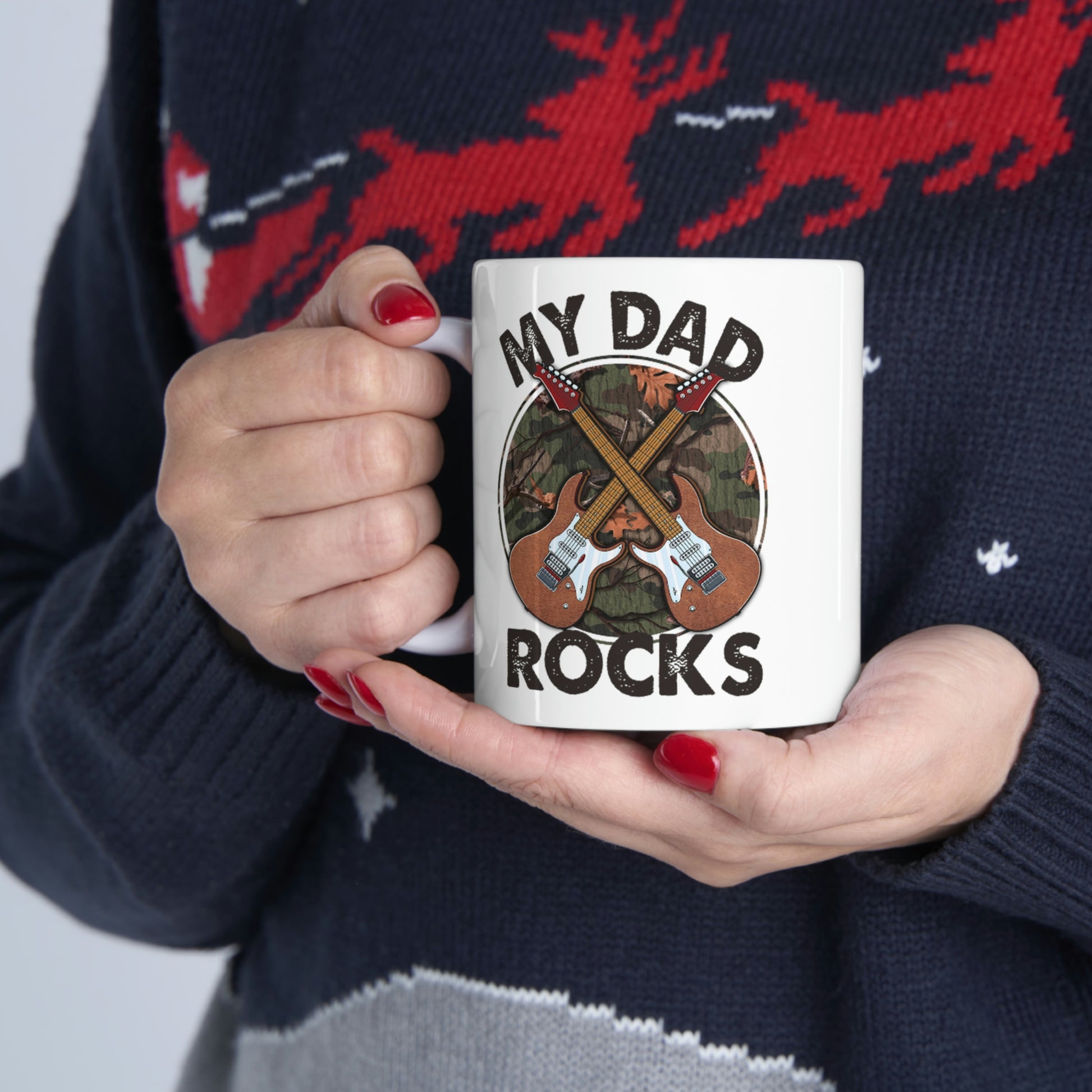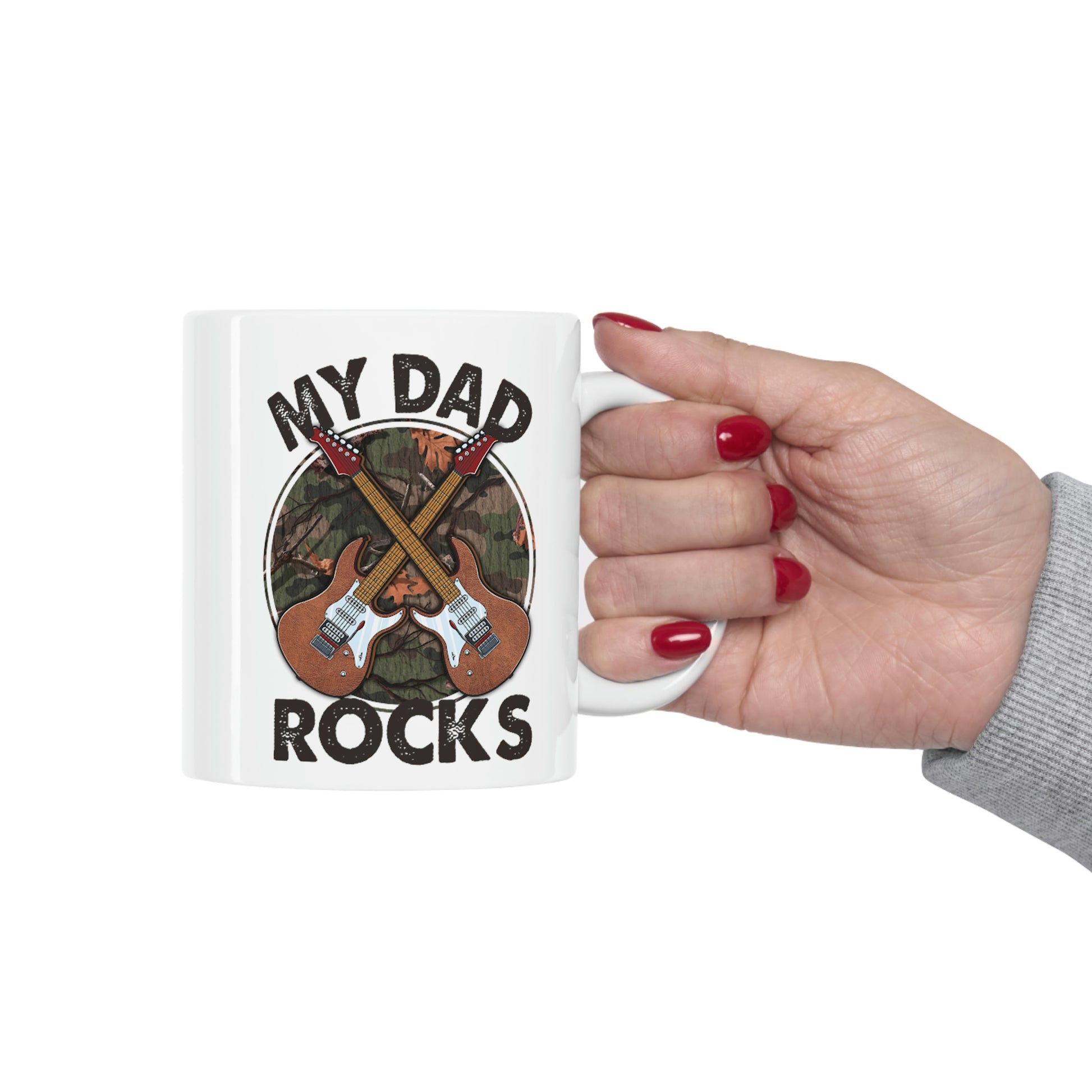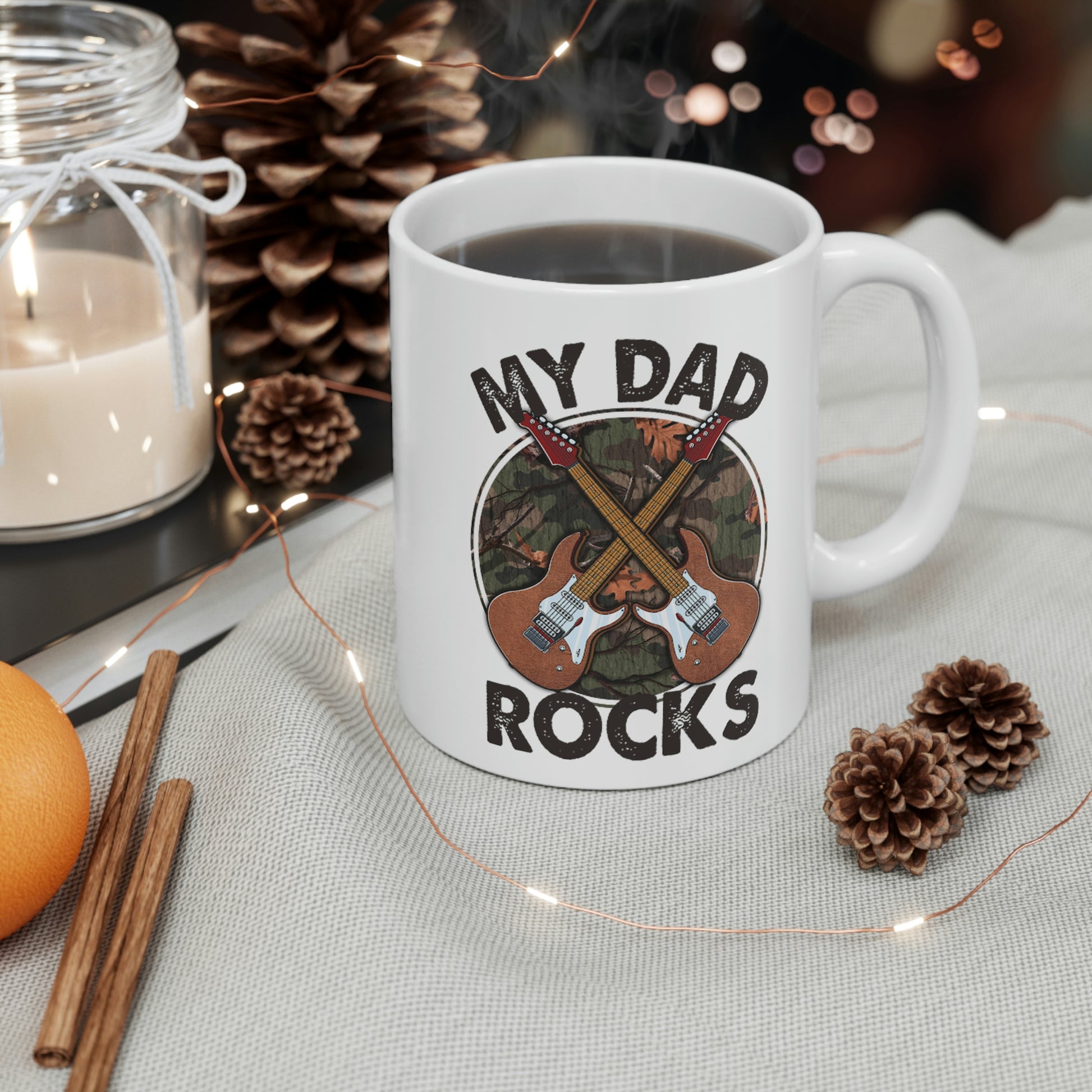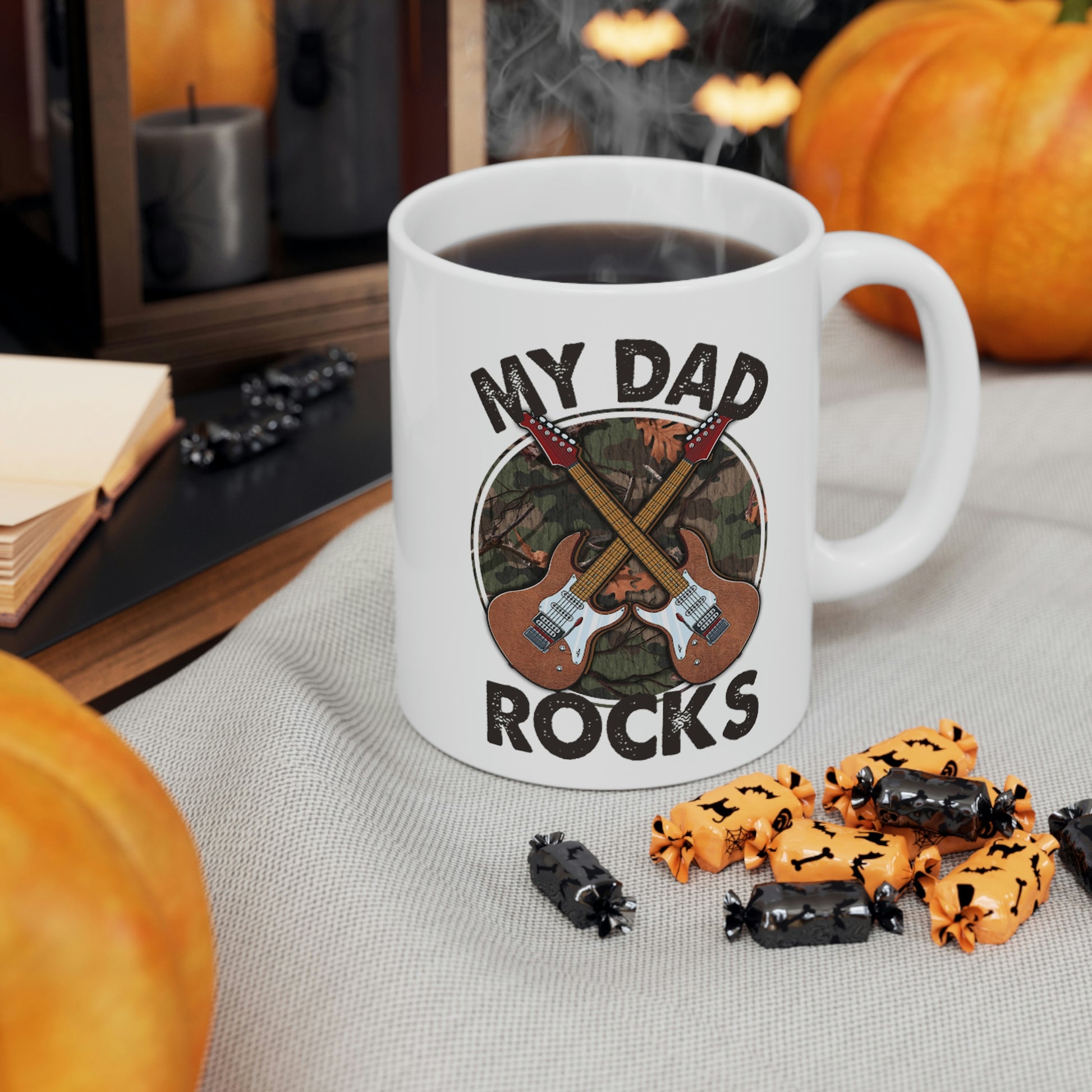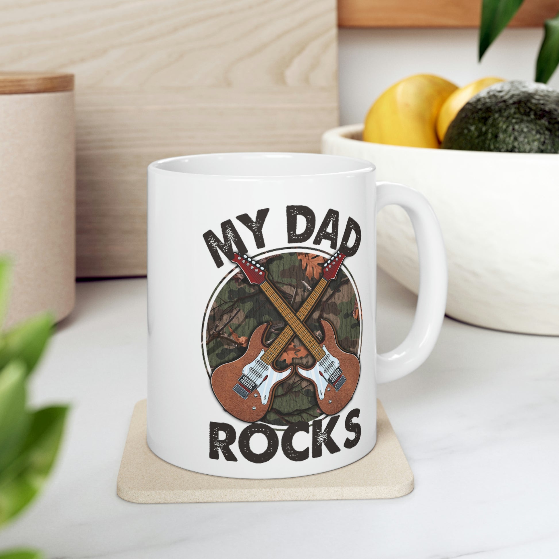 Celebrate your favorite Rocker with this My Dad Rocks coffee mug. Makes for the perfect gift for Dad on Father's Day, his birthday or any special occasion.
