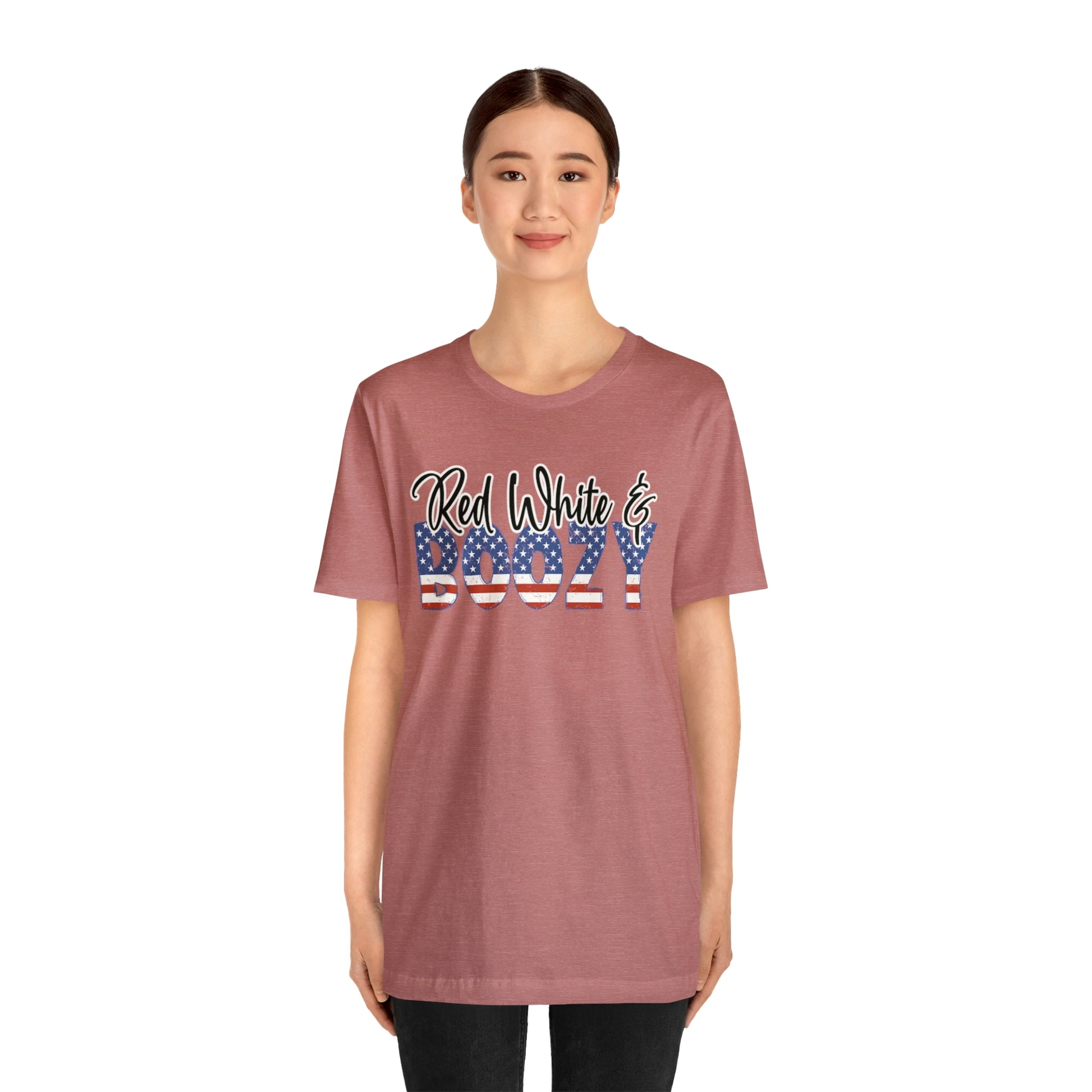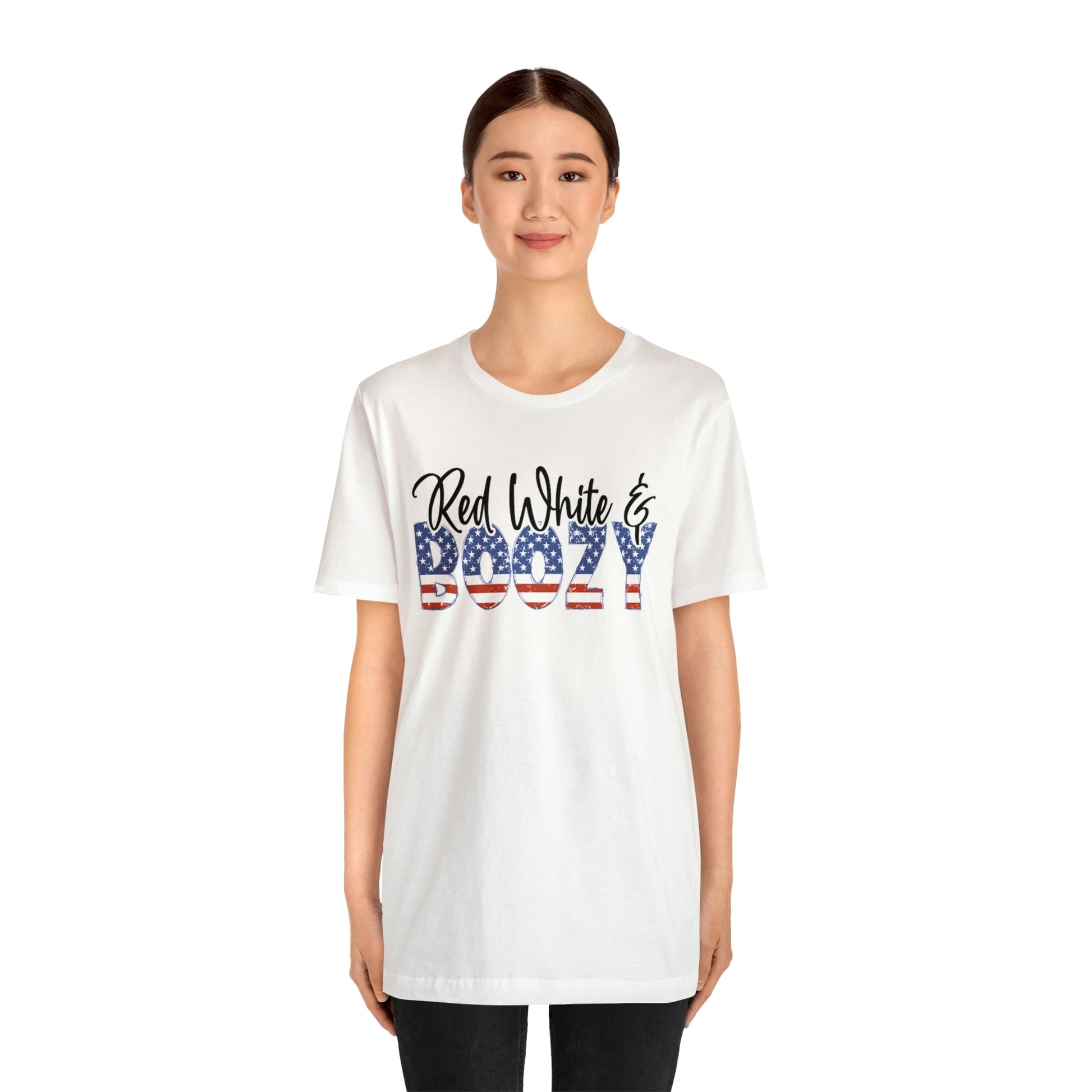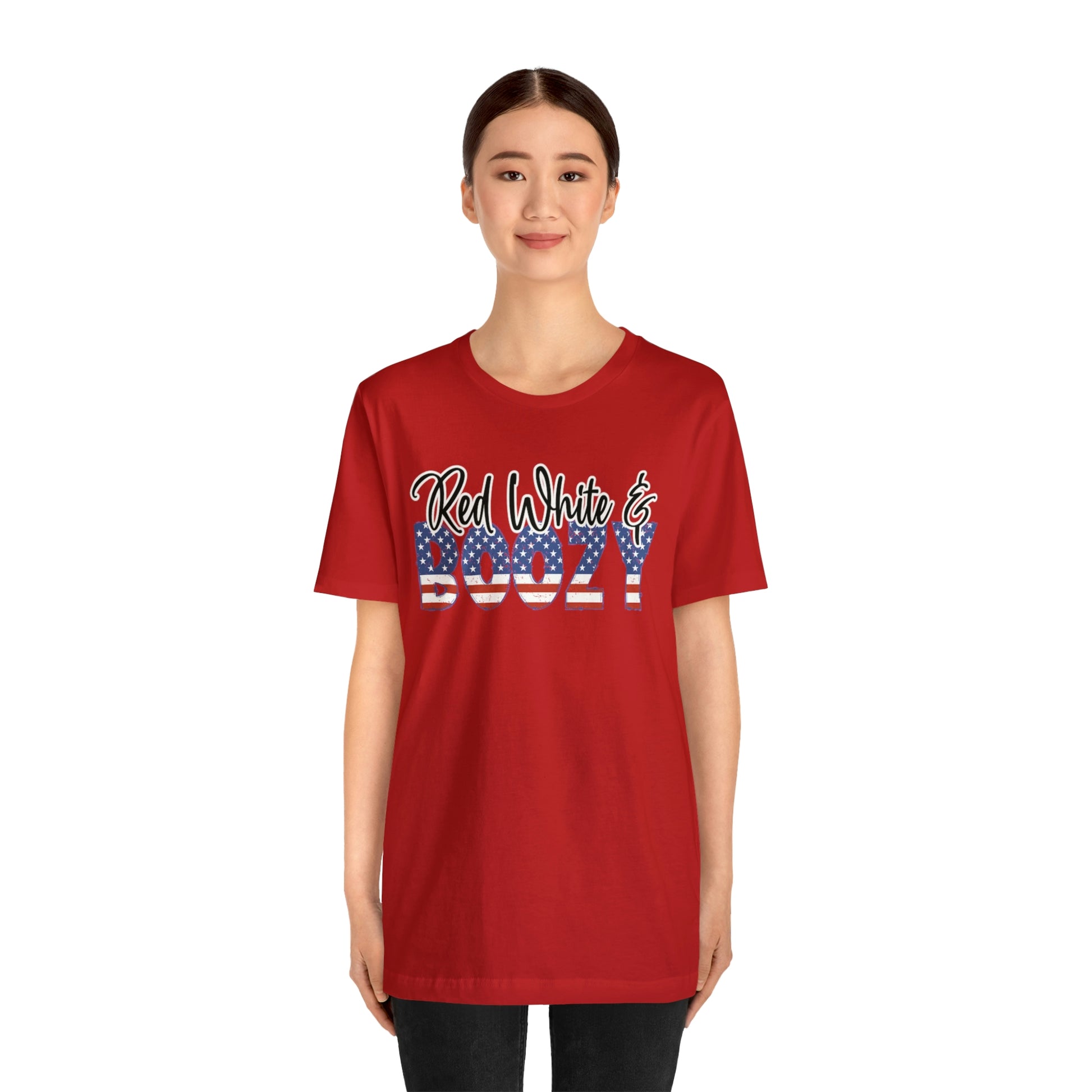 This Red White and Boozy Shirt is perfect for any Fourth of July or Memorial Day celebration. Made of a breathable cotton material that won't trap sweat and make you hot, this shirt will be a favorite for all weekend-long celebrations. The festive red and white stars, stripes and "boozy" design make it easy to show your patriotic spirit and sense of humor in style. It's perfect for wearing to a BBQ or party, but can also be worn to kick off any summer day in style.