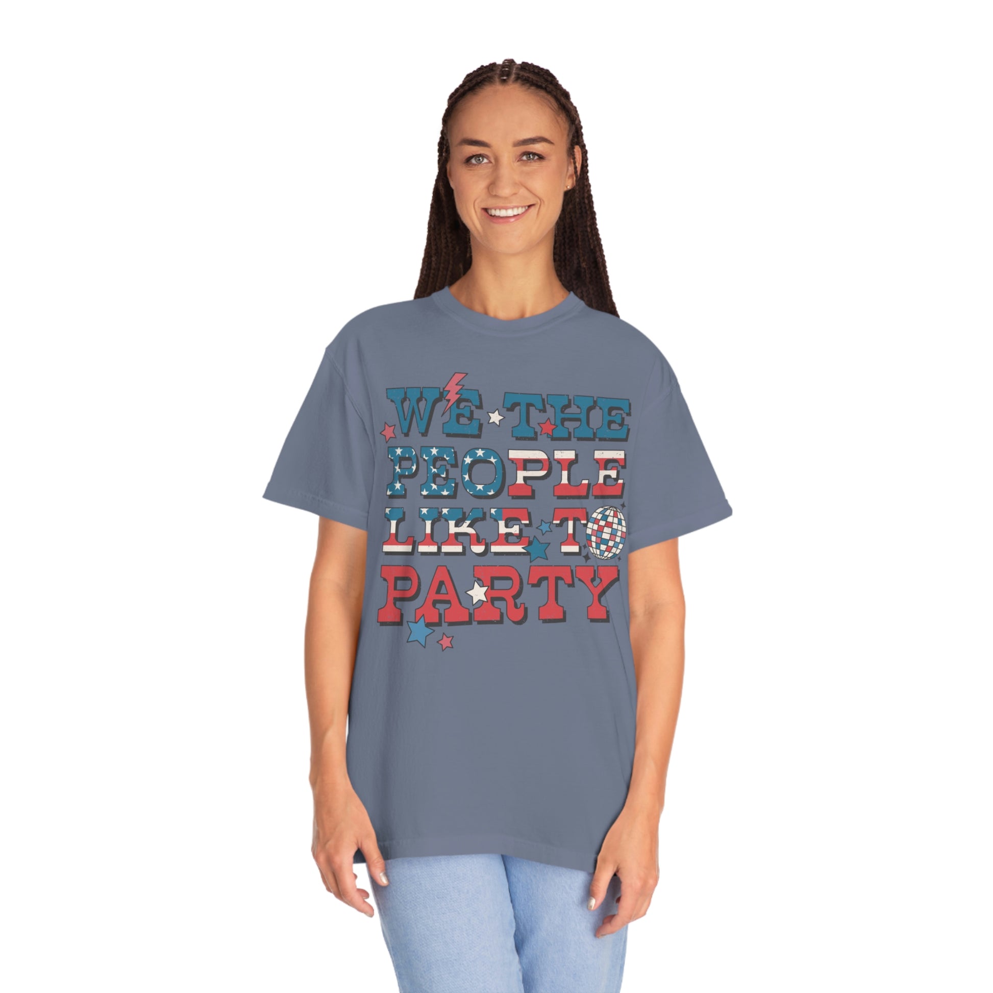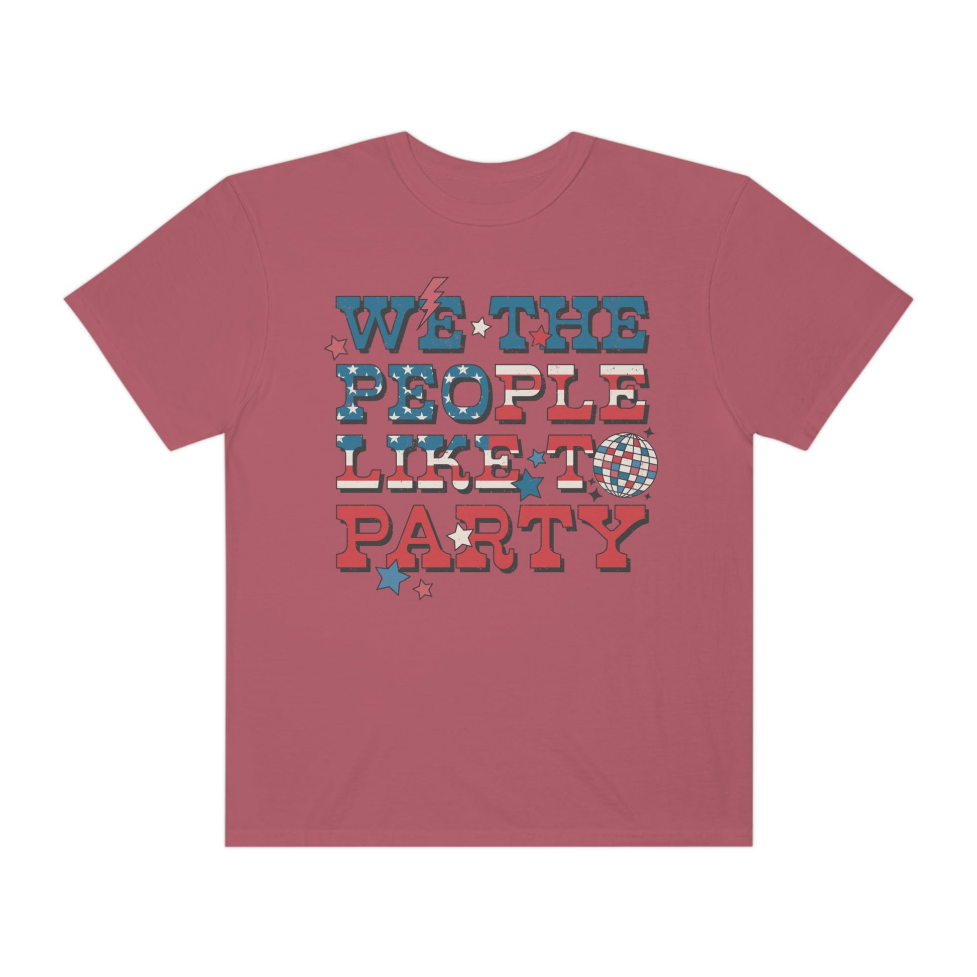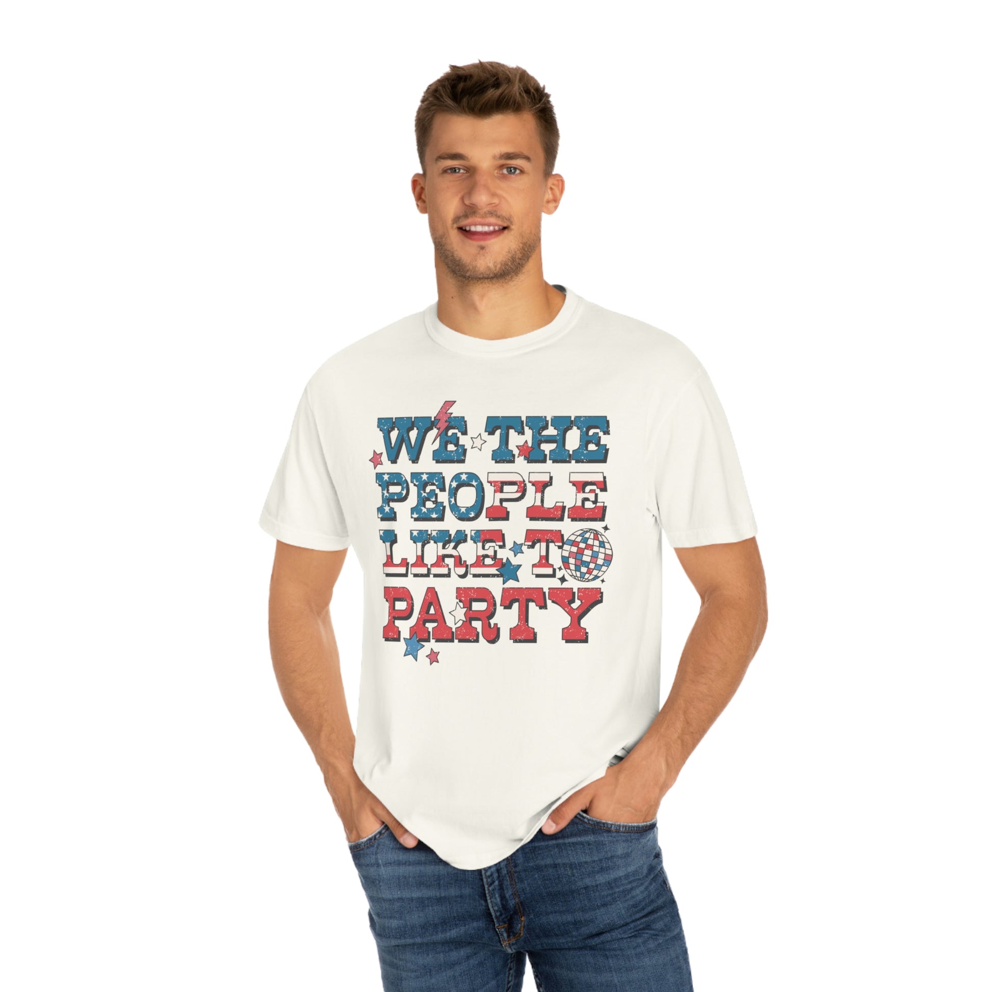 This Comfort Colors® t-shirt is a great choice for those who like to party! "We The People Like to Party" is printed in a retro font design and is prefect for 4th of July. This oversized t-shirt is made from 100% cotton with a soft washed garment dyed fabric which will give you years of comfort and style. It features relaxed necklines, double needle stitched sleeves and hem and natural colored twill tape at the back neck. Get yours today and be ready for the party for Memorial Day, Indepedance Day, Labor Day or a festive BBQ.