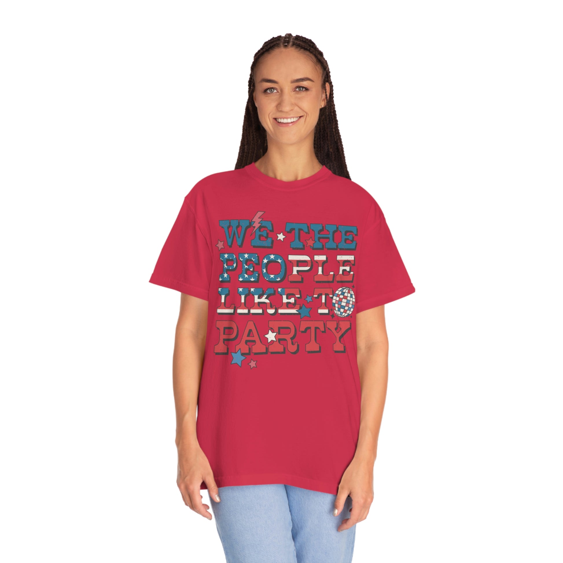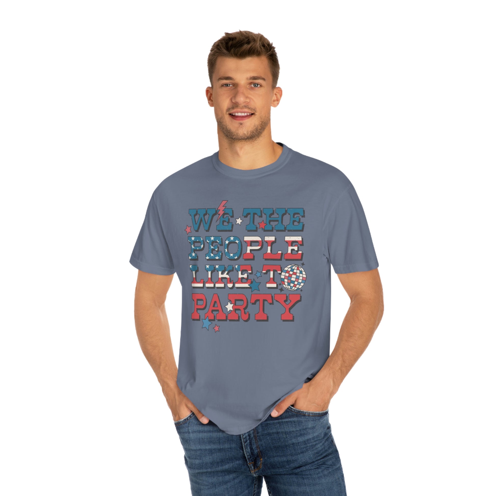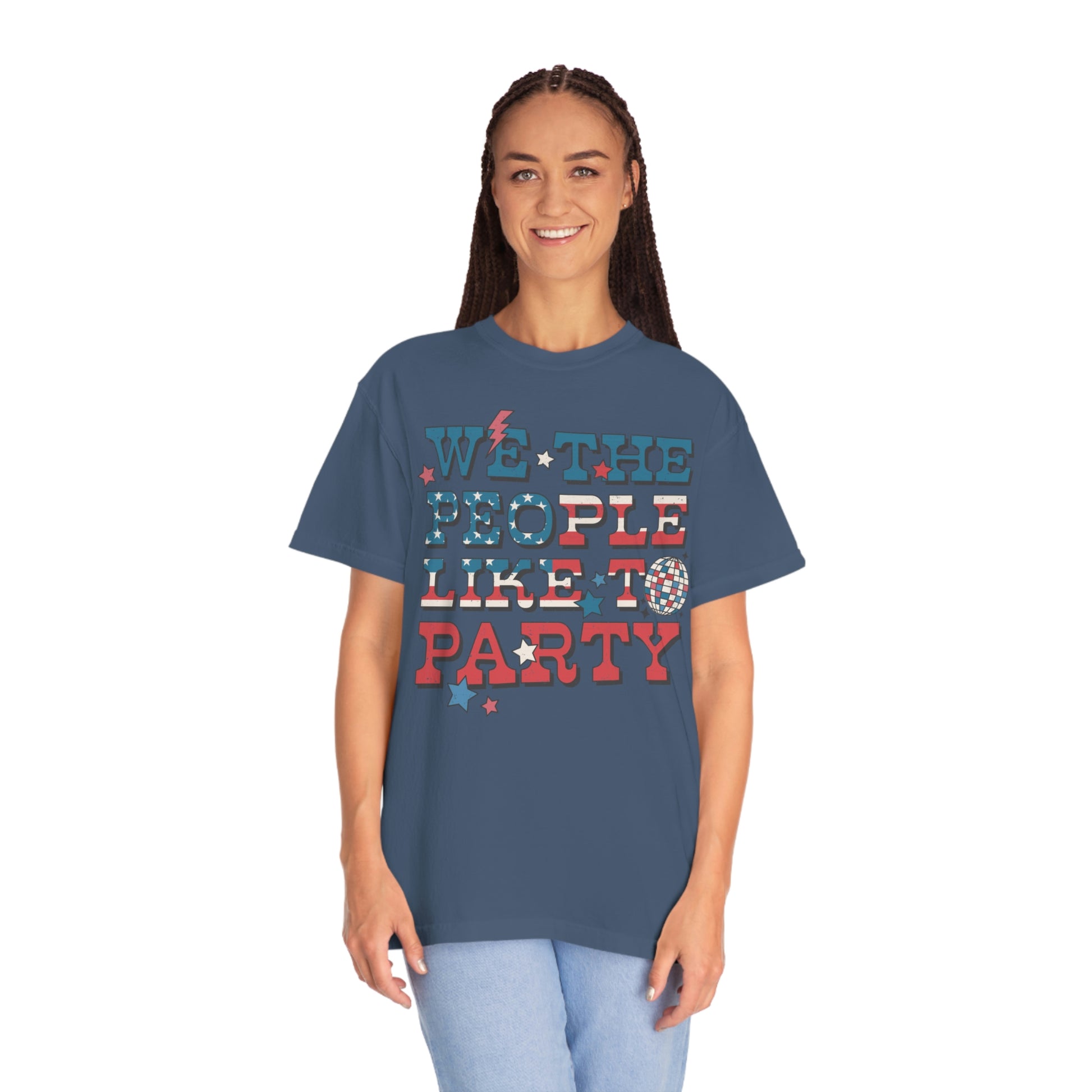 This Comfort Colors® t-shirt is a great choice for those who like to party! "We The People Like to Party" is printed in a retro font design and is prefect for 4th of July. This oversized t-shirt is made from 100% cotton with a soft washed garment dyed fabric which will give you years of comfort and style. It features relaxed necklines, double needle stitched sleeves and hem and natural colored twill tape at the back neck. Get yours today and be ready for the party for Memorial Day, Indepedance Day, Labor Day or a festive BBQ.