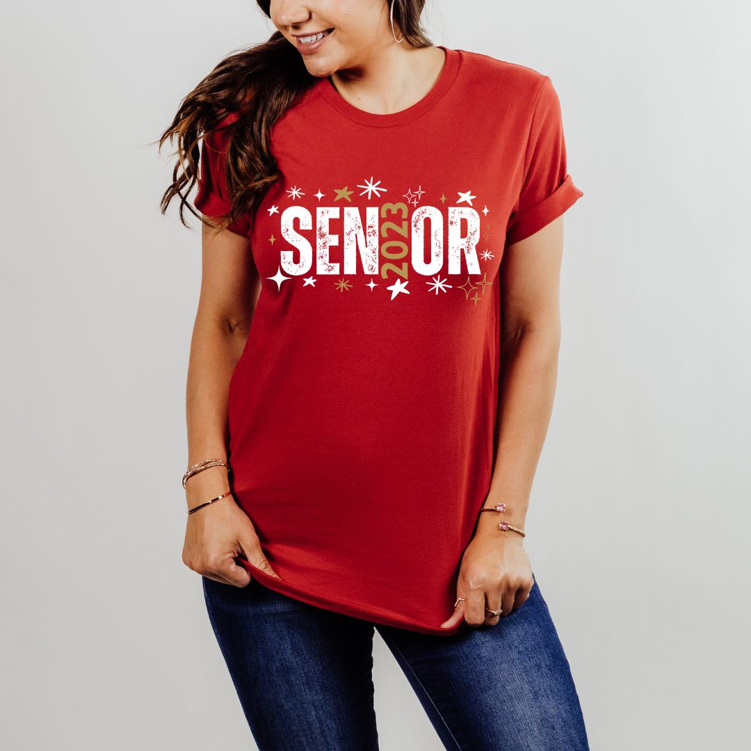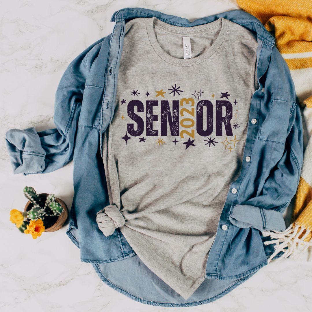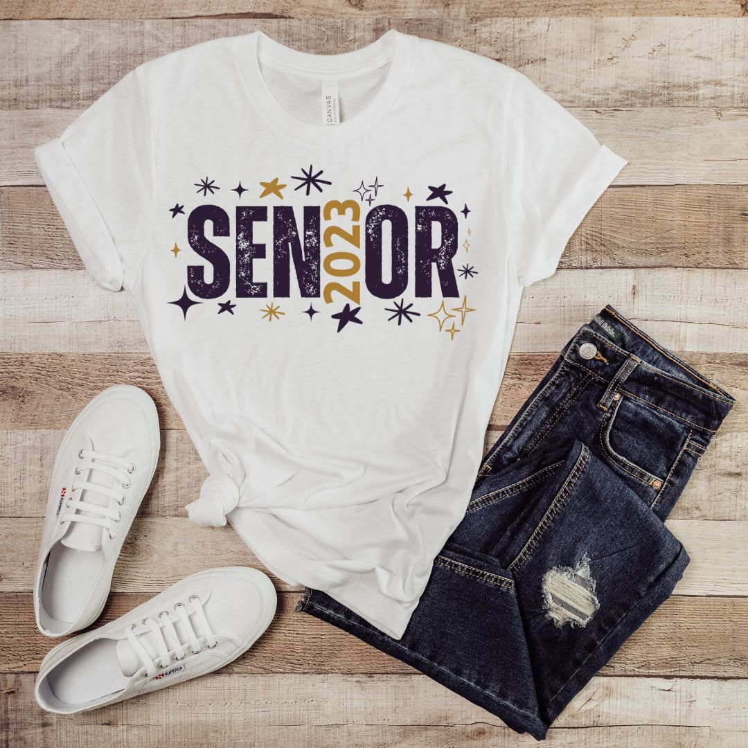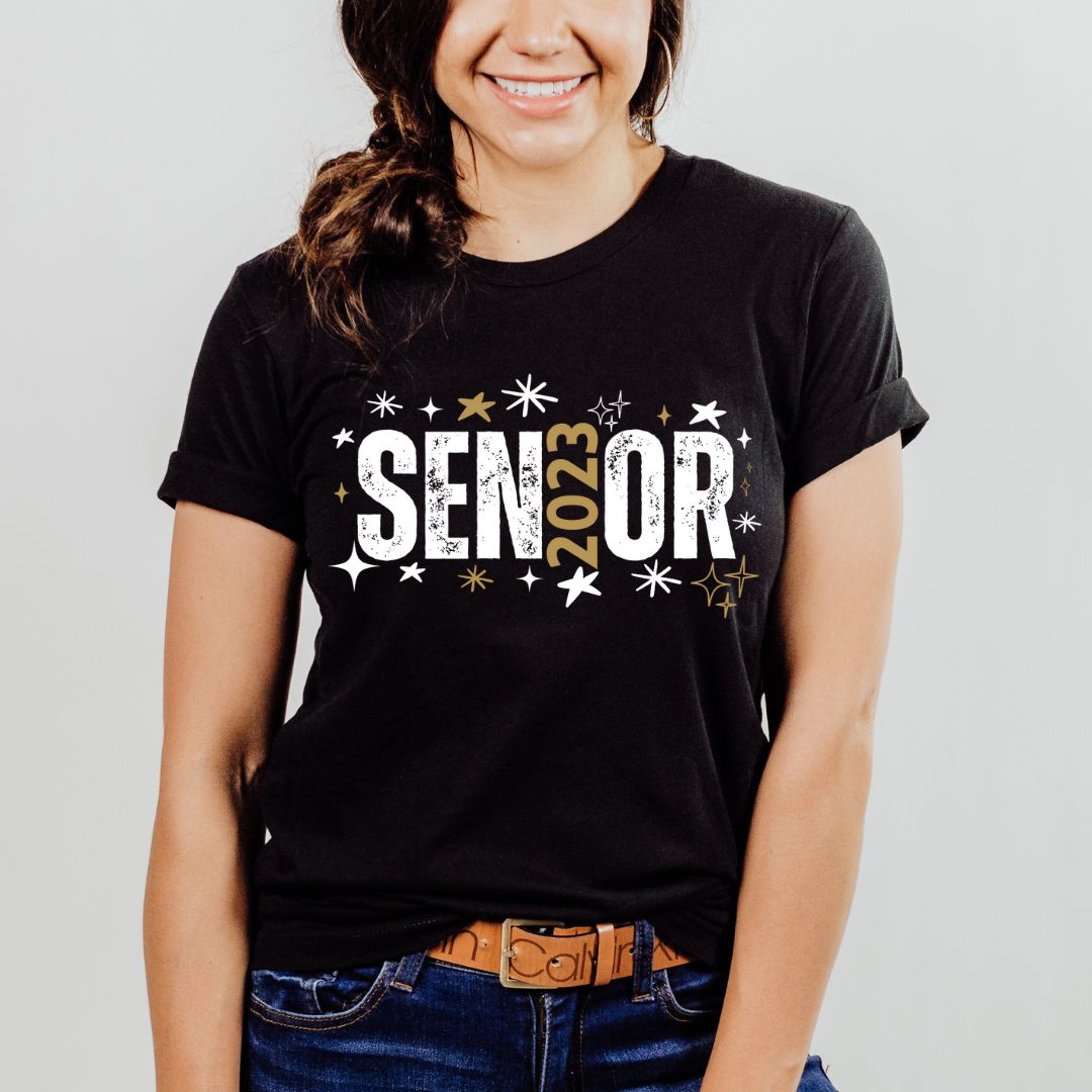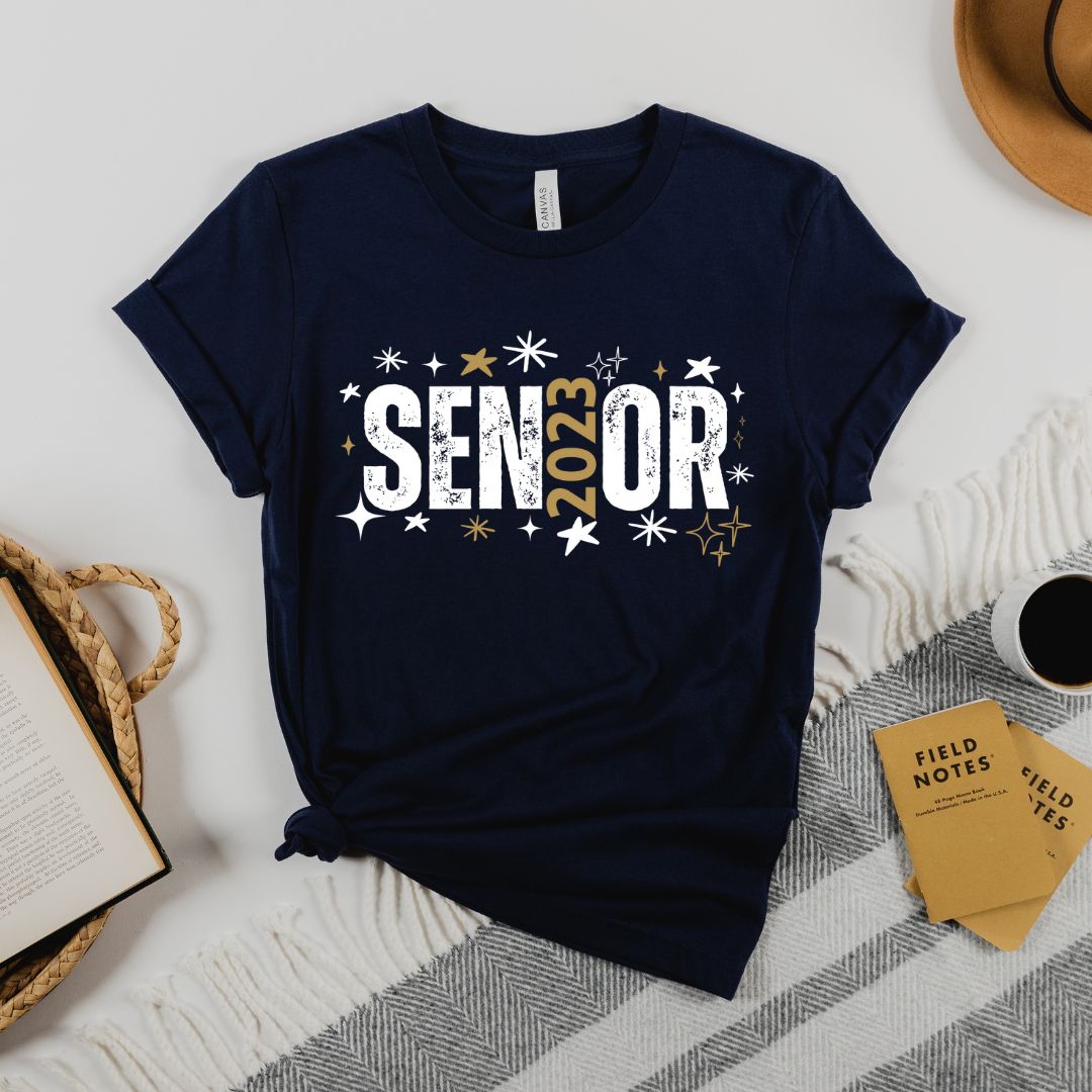 This classic round neck t-shirt, designed with a sparkly Senior Class of 2023 graphic, is the perfect gift for the graduating class of 2023! It's made from ultra soft and comfortable material that’s breathable and lightweight for all-day comfort. With its tailored fit and longer length, the shirt moves with you for all your school and social activities. Show your pride and support for the graduating class with this limited edition design!