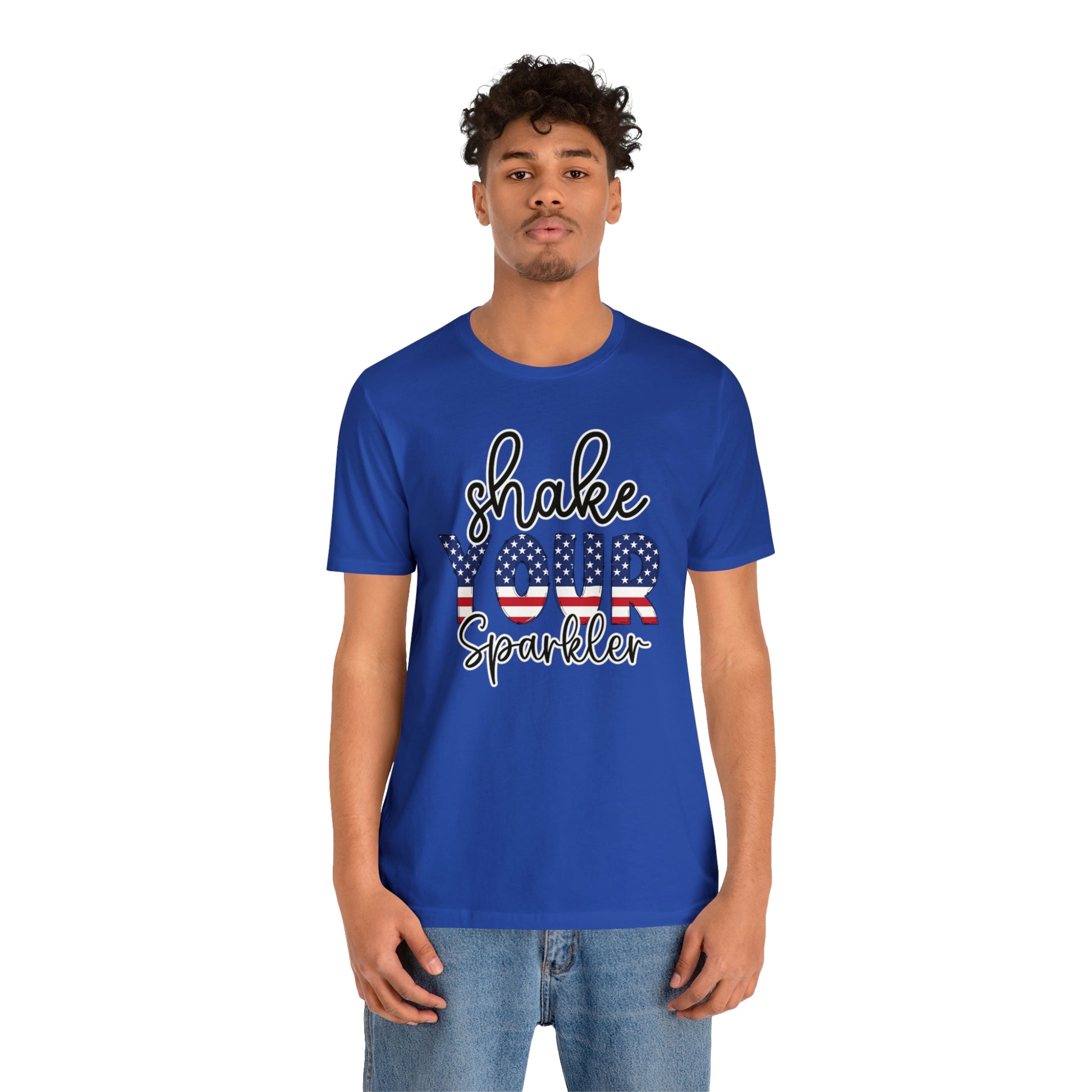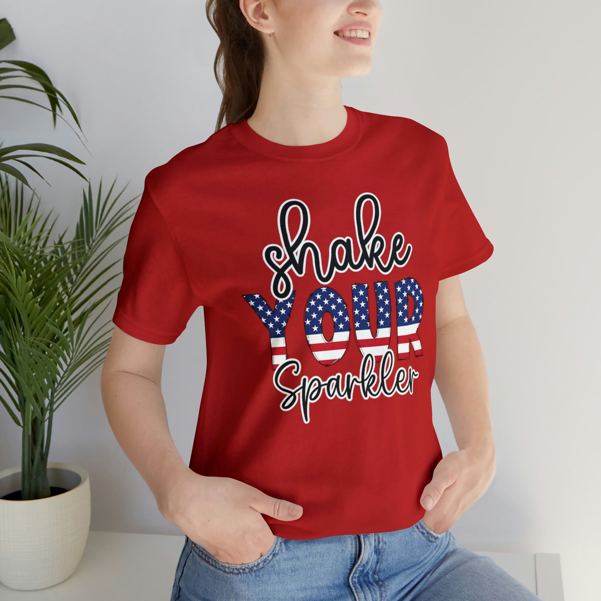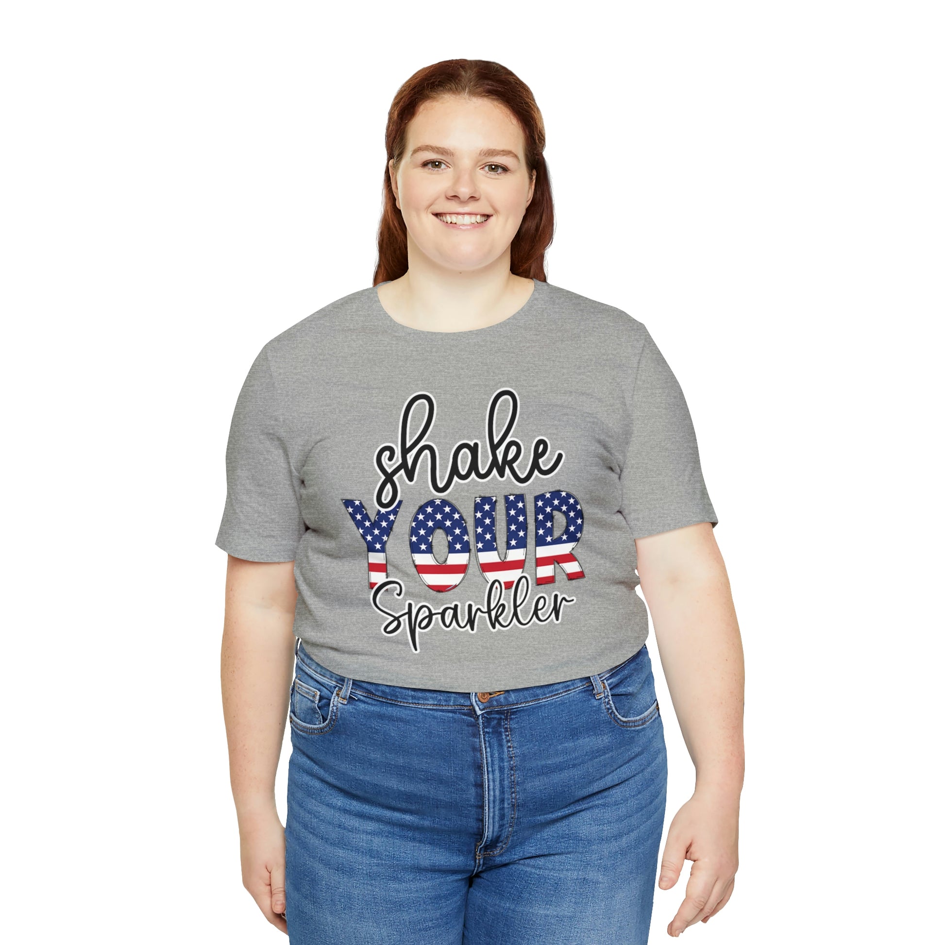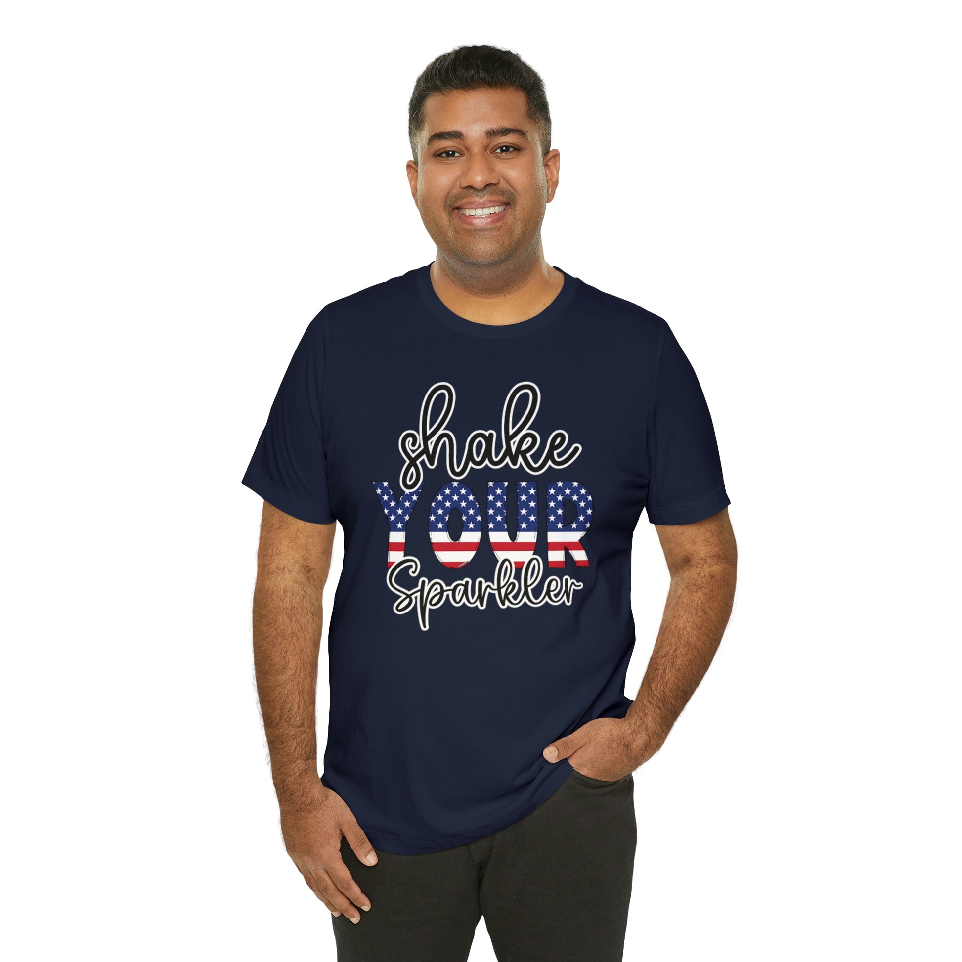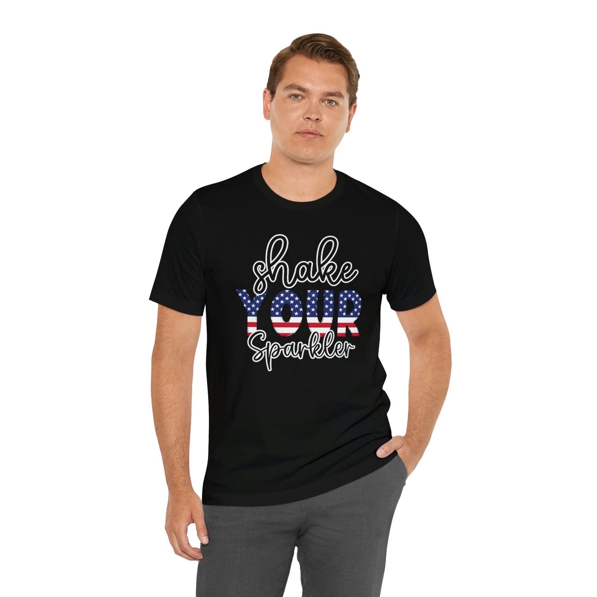 Shake Your Sparkler and shine in this super soft premium T-shirt. Crafted with a 100% ring-spun cotton, this short sleeve shirt is lightweight and ultra-comfortable. The classic fit and crew neck of the shirt provides a style that is timeless and perfect for all occasions. Printed with an intricate and vibrant design, this tee stands out whilst remaining effortless and stylish. Express yourself in this stylish and eye-catching design you can wear for 4th of July, Memorial Day, Veteran's Day or any festive B.B.Q.