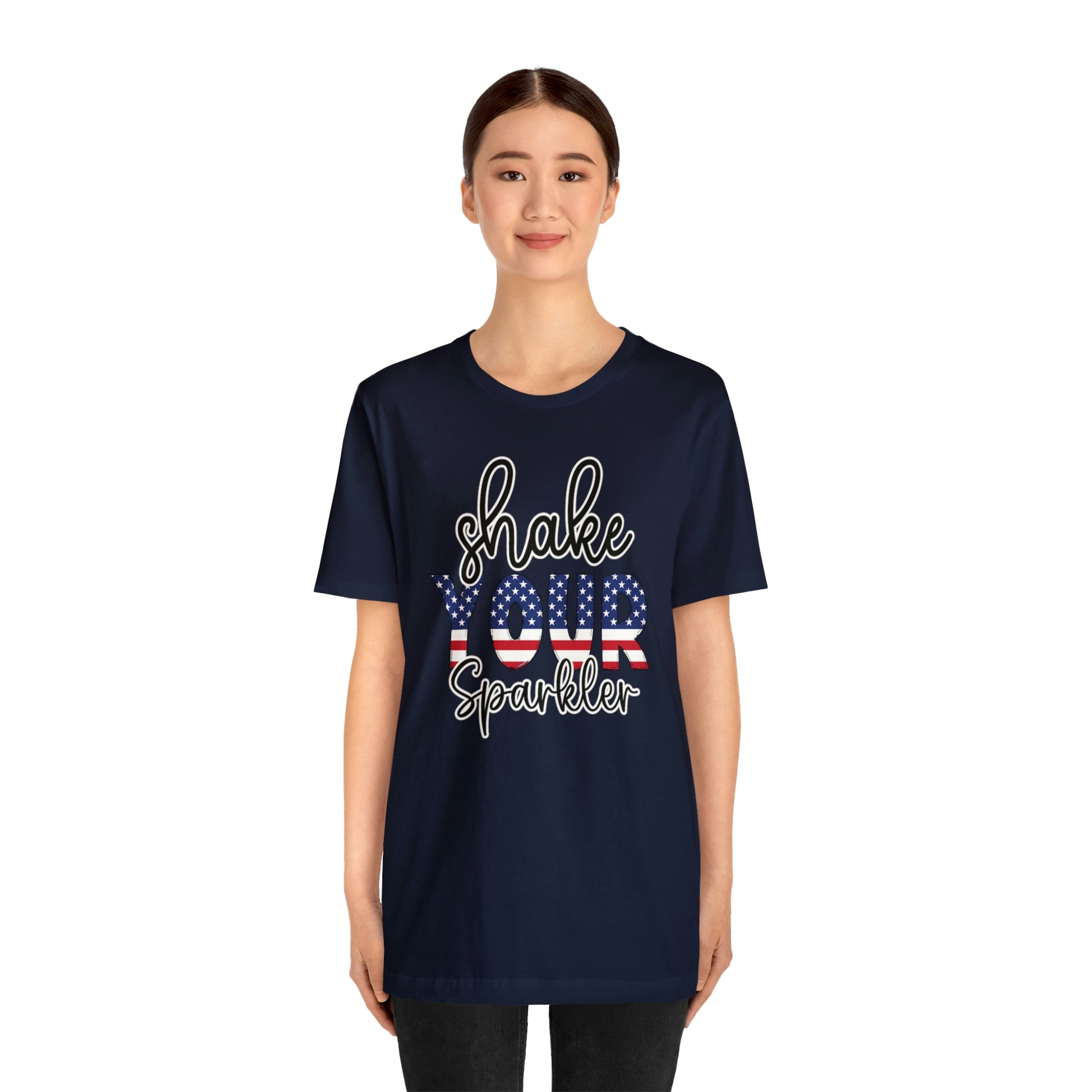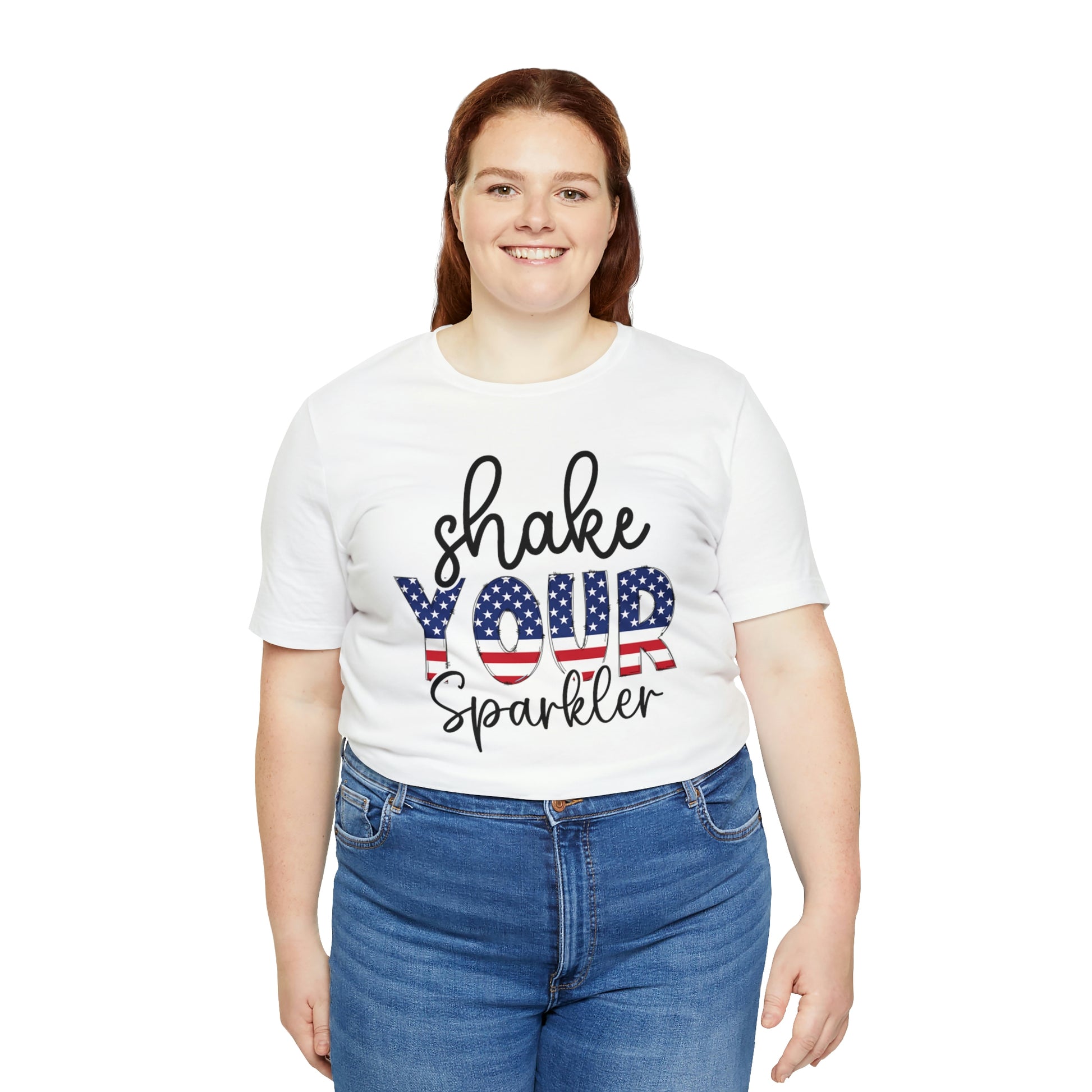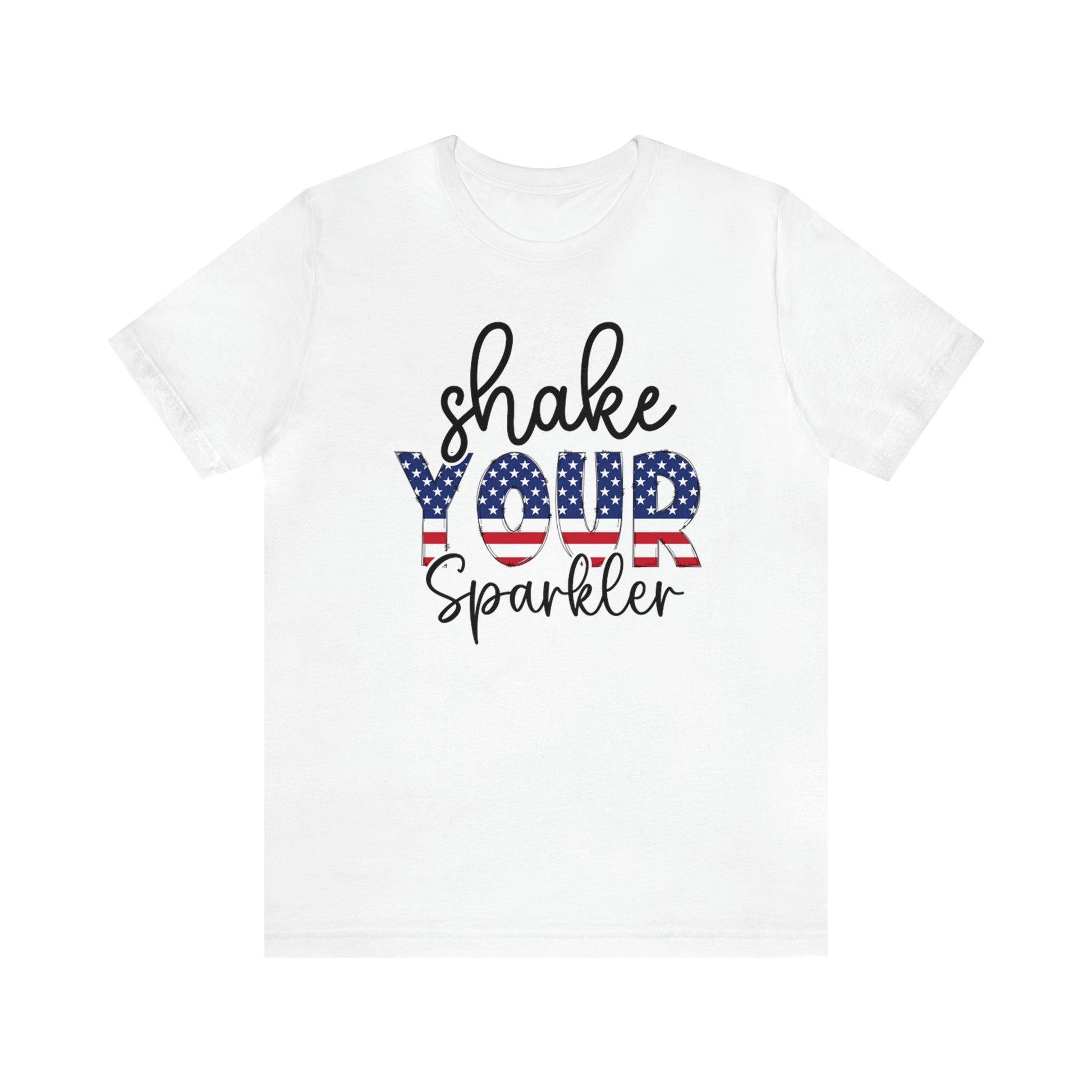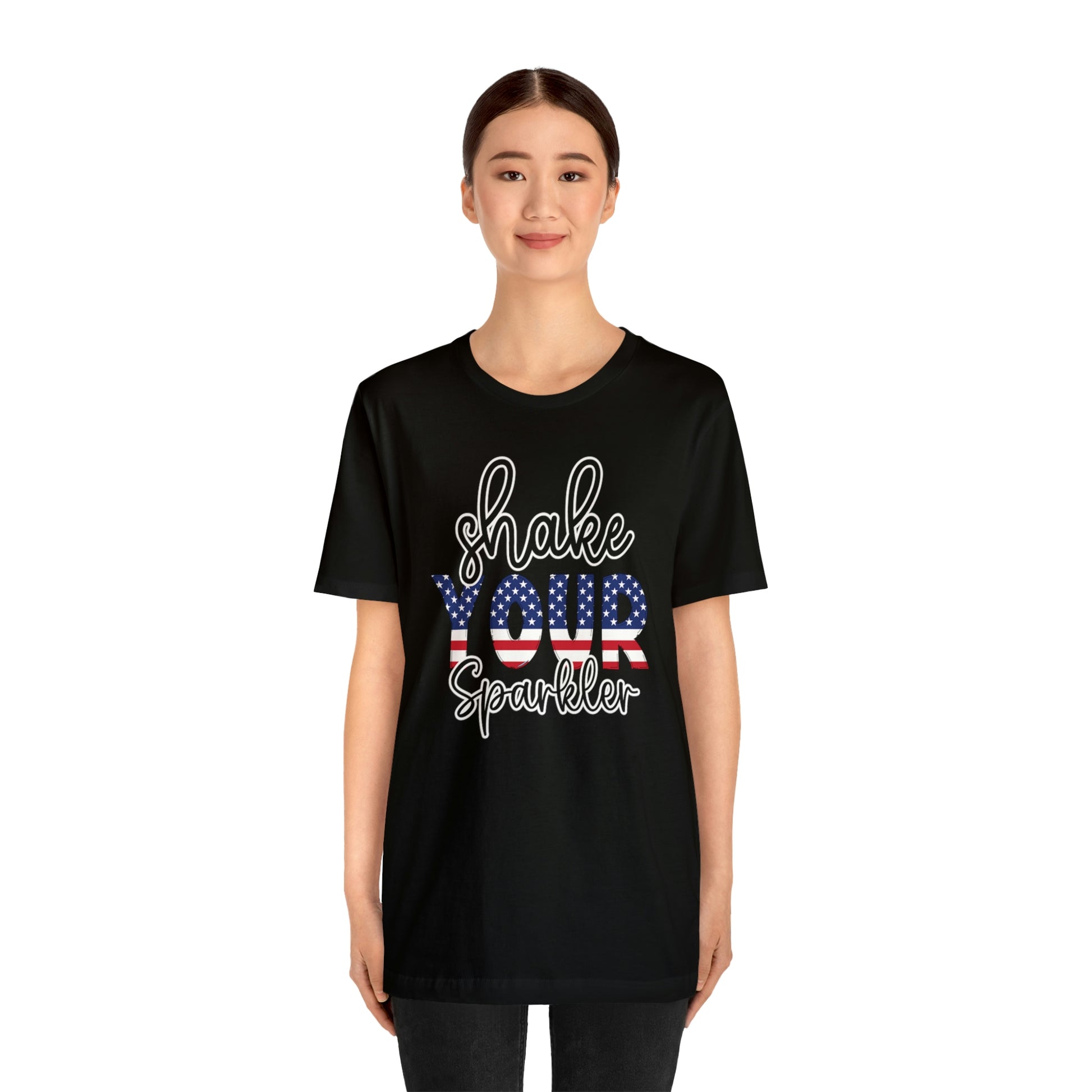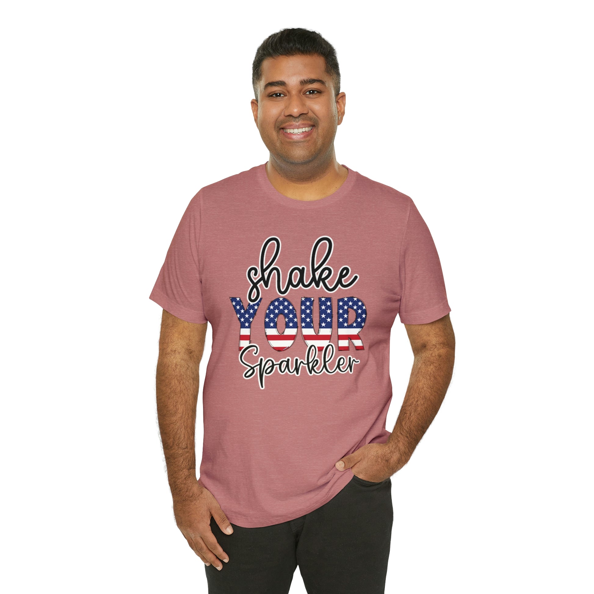 Shake Your Sparkler and shine in this super soft premium T-shirt. Crafted with a 100% ring-spun cotton, this short sleeve shirt is lightweight and ultra-comfortable. The classic fit and crew neck of the shirt provides a style that is timeless and perfect for all occasions. Printed with an intricate and vibrant design, this tee stands out whilst remaining effortless and stylish. Express yourself in this stylish and eye-catching design you can wear for 4th of July, Memorial Day, Veteran's Day or any festive B.B.Q.
