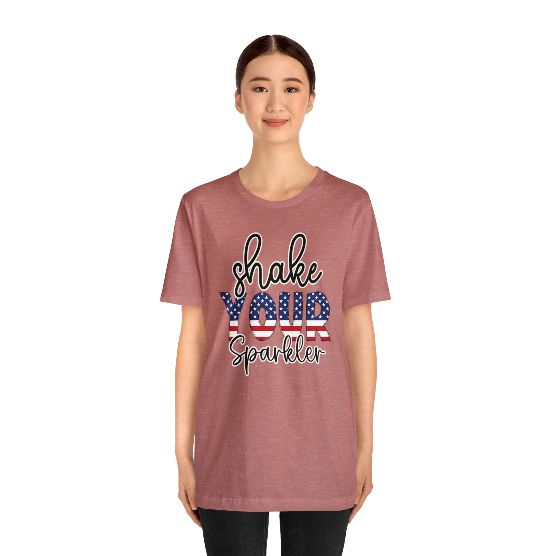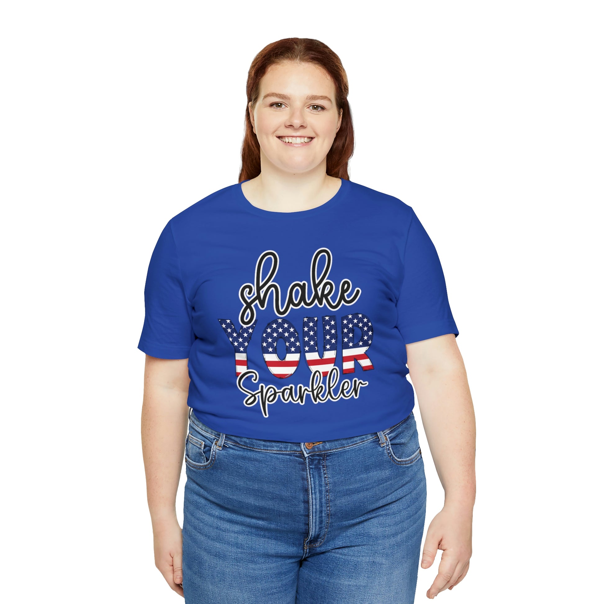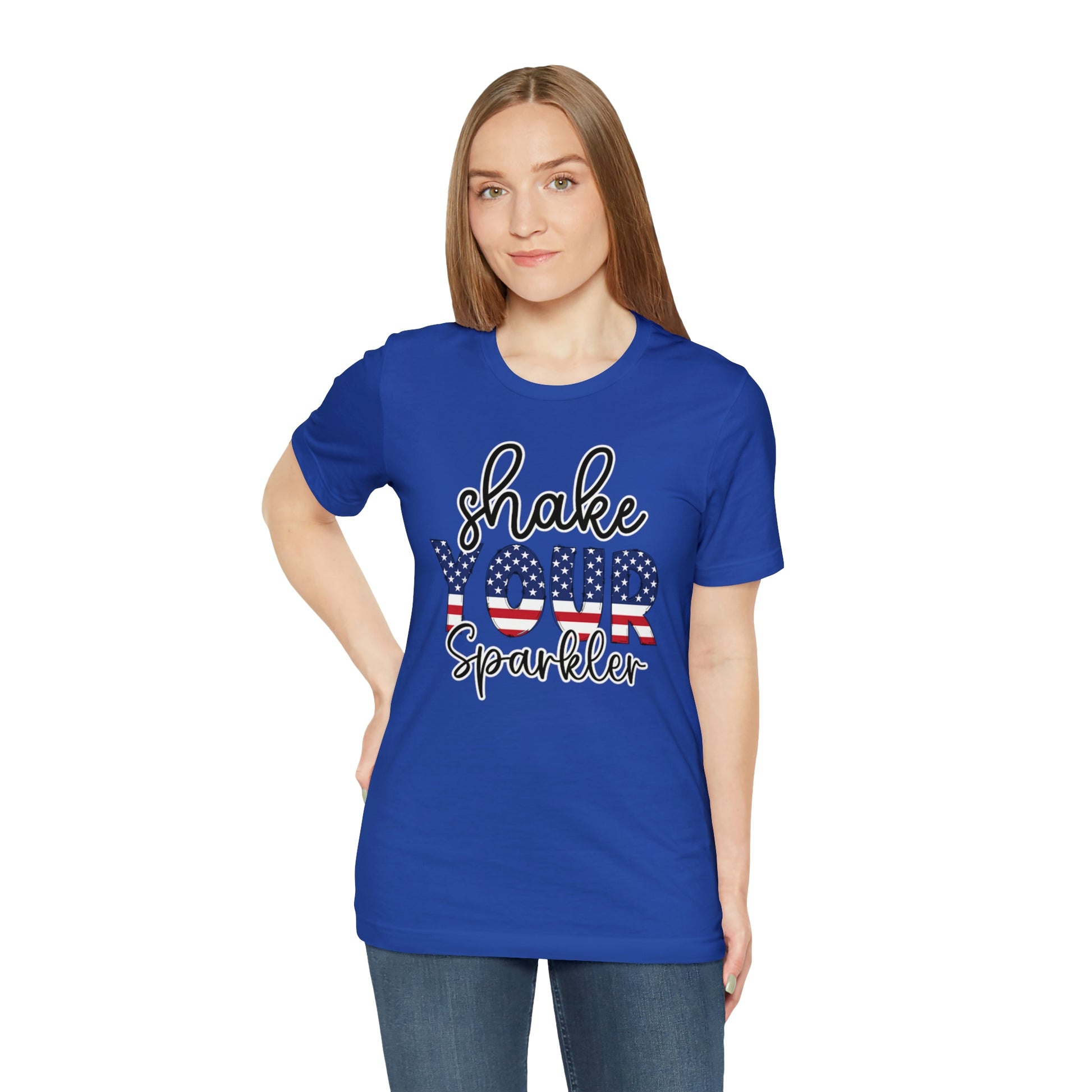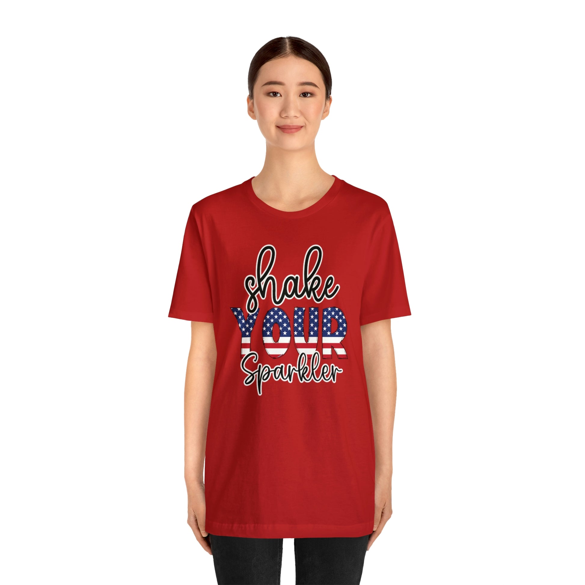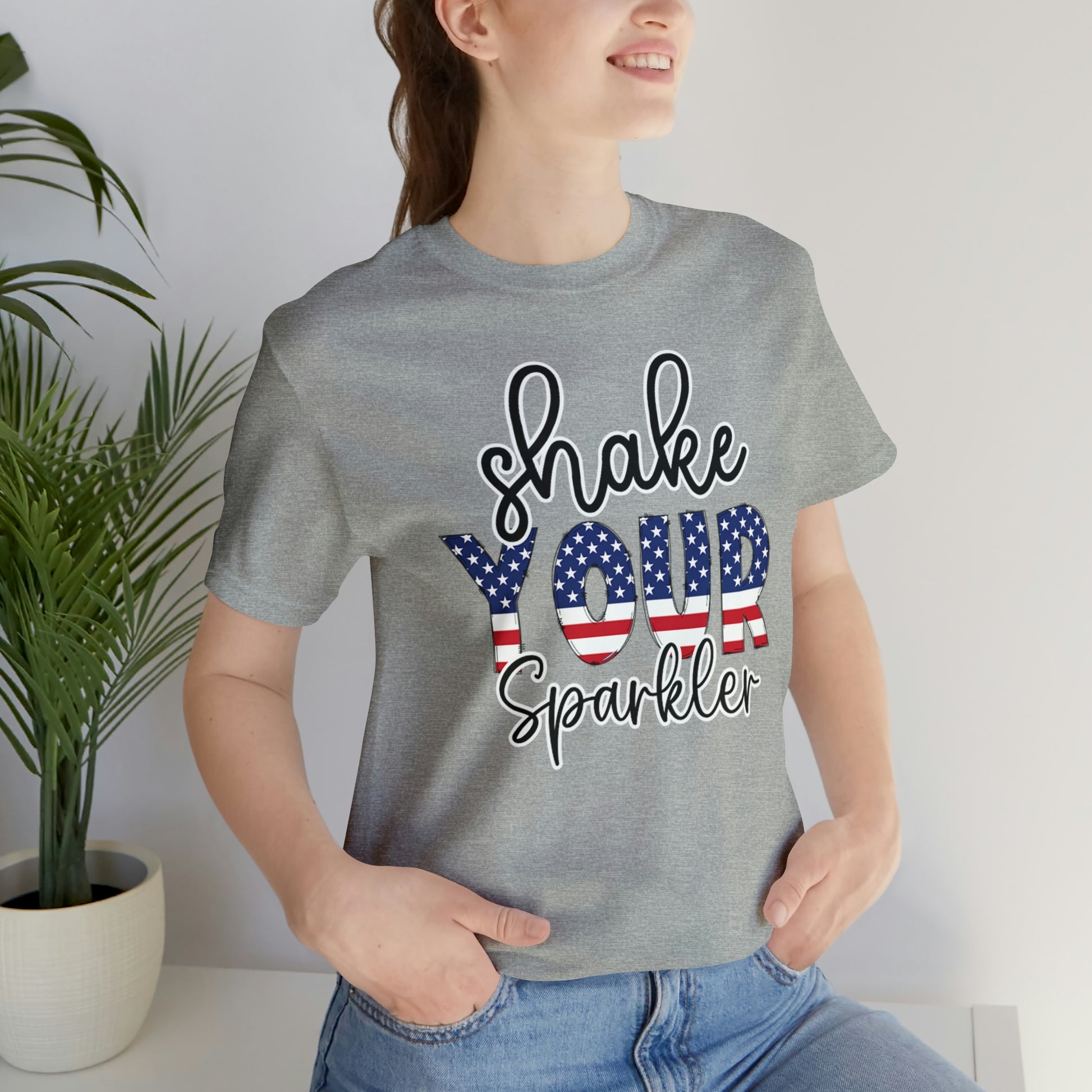 Shake Your Sparkler and shine in this super soft premium T-shirt. Crafted with a 100% ring-spun cotton, this short sleeve shirt is lightweight and ultra-comfortable. The classic fit and crew neck of the shirt provides a style that is timeless and perfect for all occasions. Printed with an intricate and vibrant design, this tee stands out whilst remaining effortless and stylish. Express yourself in this stylish and eye-catching design you can wear for 4th of July, Memorial Day, Veteran's Day or any festive B.B.Q.