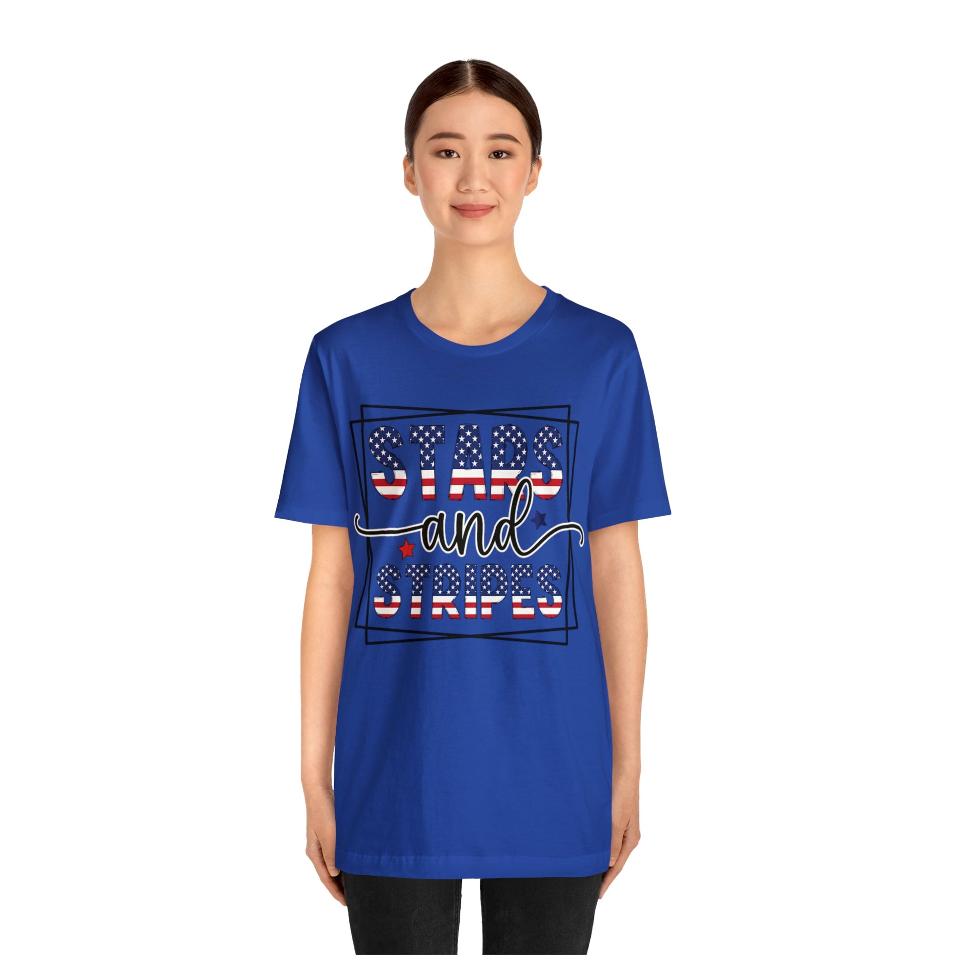 This stylish "Stars and Stripes" shirt has classic American design perfected for a modern fit.  The shirt is detailed with a crew neck, soft premium fabric and is sure to be a conversation starter. The red, white and blue pattern is sure to show your patriotic spirit. It's perfect for Memorial Day, 4th of July, Veteran's Day or any festive BBQ.  Available in a variety of sizes for all body types, you'll be proud to wear this shirt wherever you go.