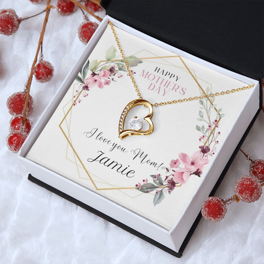 The dazzling Forever Love Necklace is sure to make her heart melt! This necklace features a stunning 6.5mm CZ crystal surrounded by a polished heart pendant embellished with smaller crystals to add extra sparkle and shine. Beautifully crafted with either a white gold or yellow gold finish, be sure to give her a classic gift she can enjoy everyday.