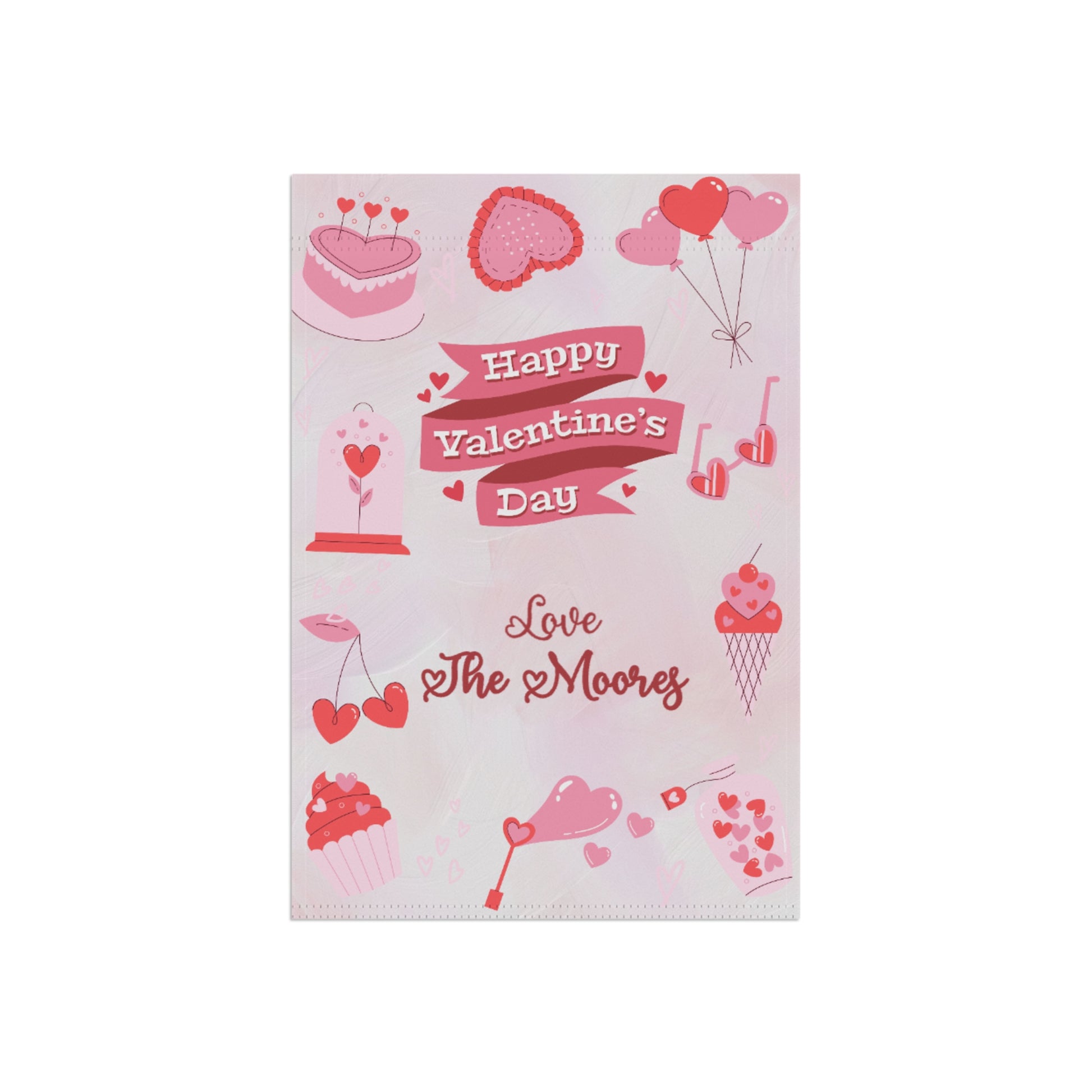 Say "Happy Valentine's Day" to your neighborhood with this personalized Valentine's  Day Icons Garden Flag. This Valentine's Day garden banner makes the perfect gift for gardeners, grandparents or someone special.